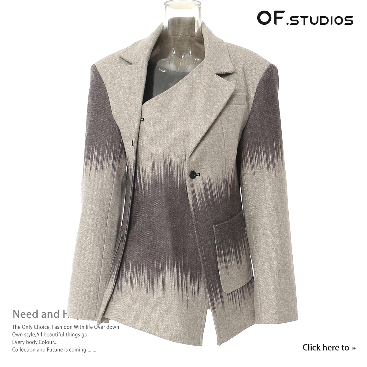25 Autumn And Winter British Style Geometric Print Personality Cut To Repair The Body Hair Coat Woman 1712 HZ1208