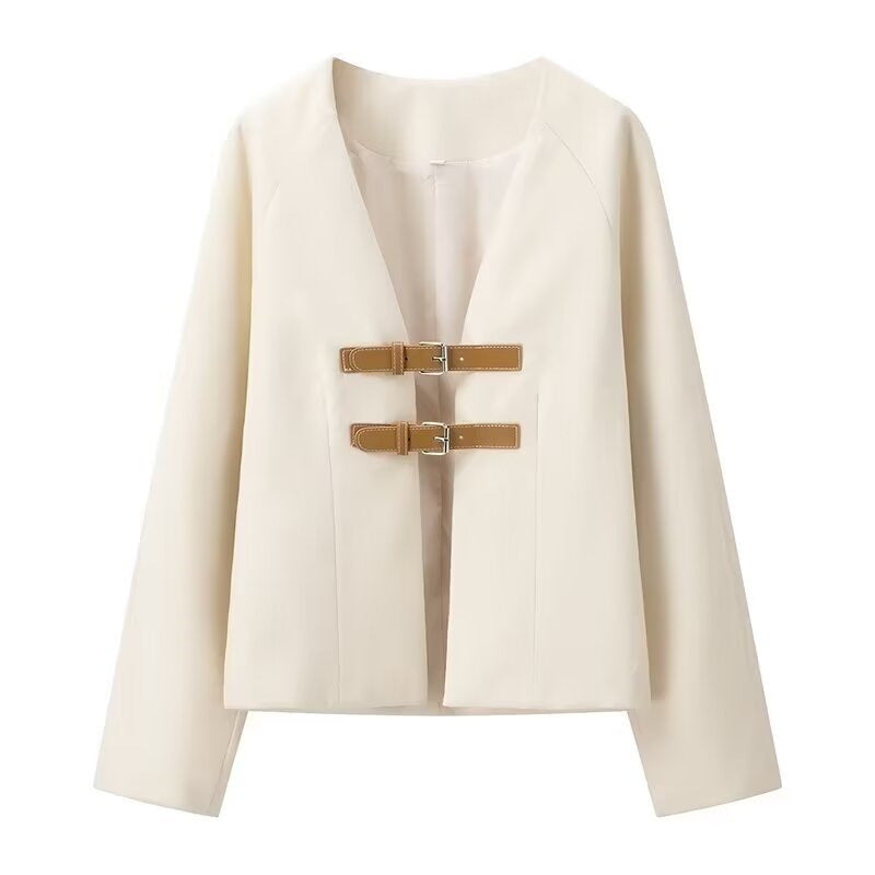 Autumn 2025 New Women's Fashion V-Neck Solid Color Bhise Tripch With Soft Long-Sleeved Coat HZ1208