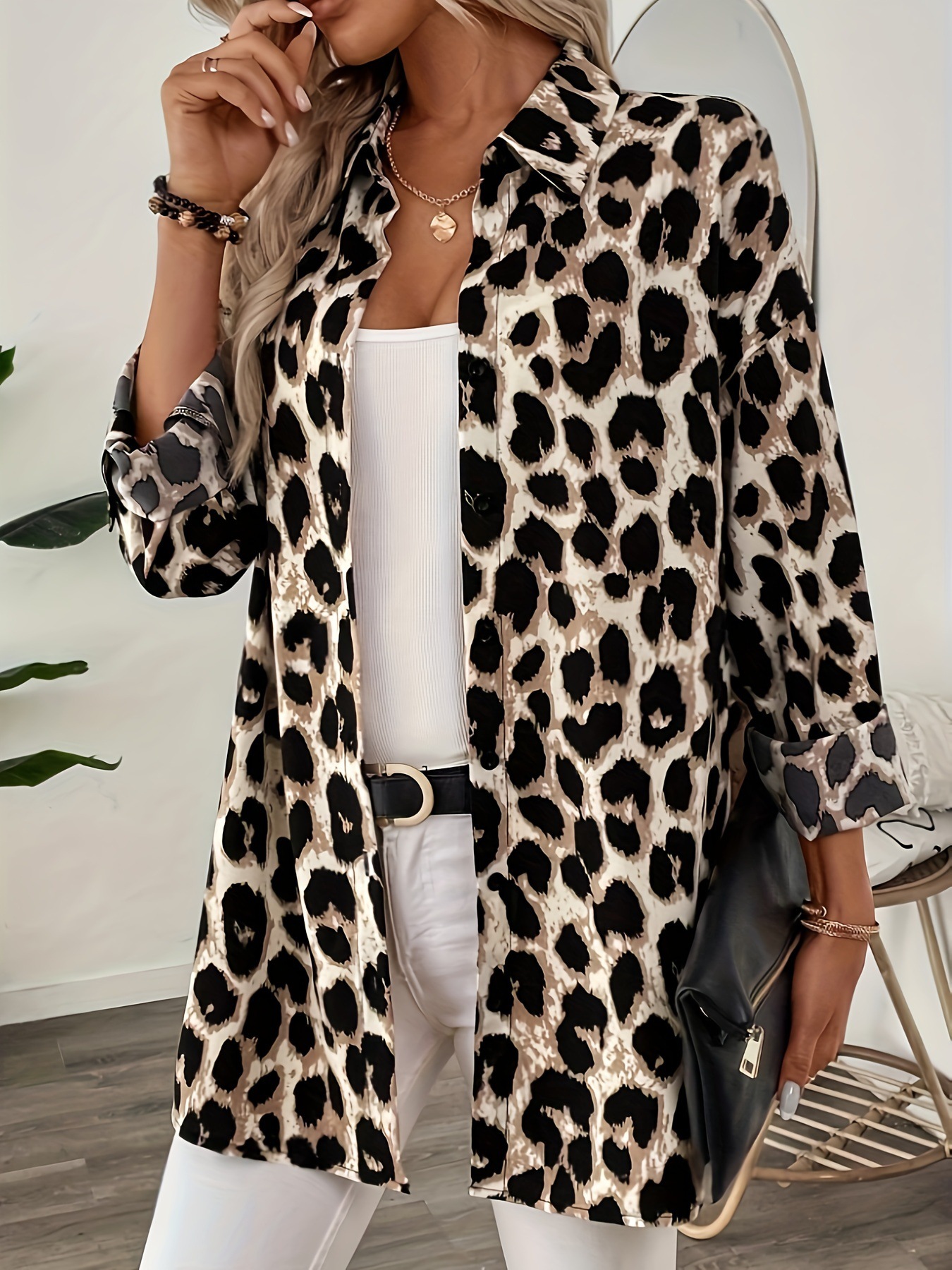 Autumn And Winter New Elegant Shirt Leopard Print Long-Sleeved Casual Holiday Shirt Top HZ1208