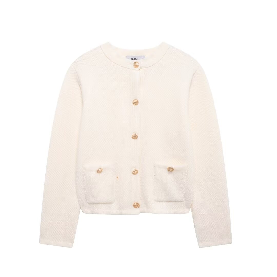 Autumn New Gold Buckle Trim Knitted Coat 6427144 HZ1208