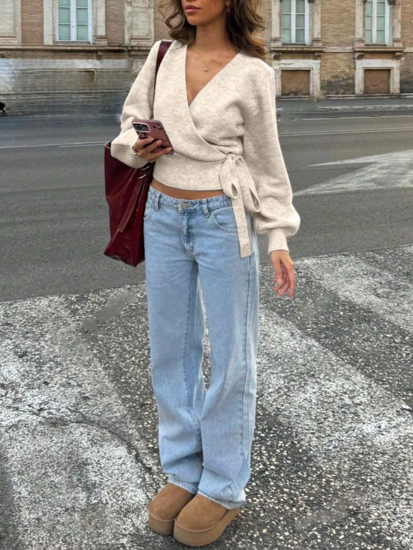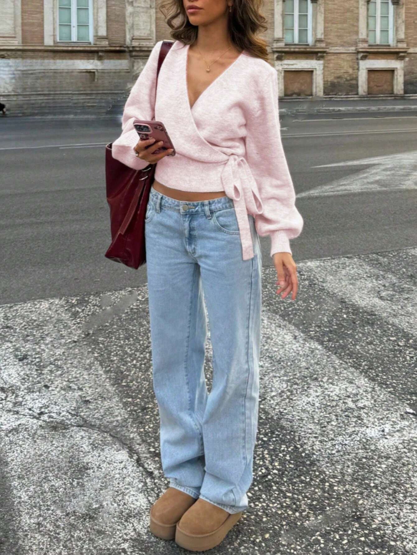 Cross-Cross V-Neck Knitted Shirt Autumn And Winter Irregular Strap Elegant Short Top Lady HZ1208