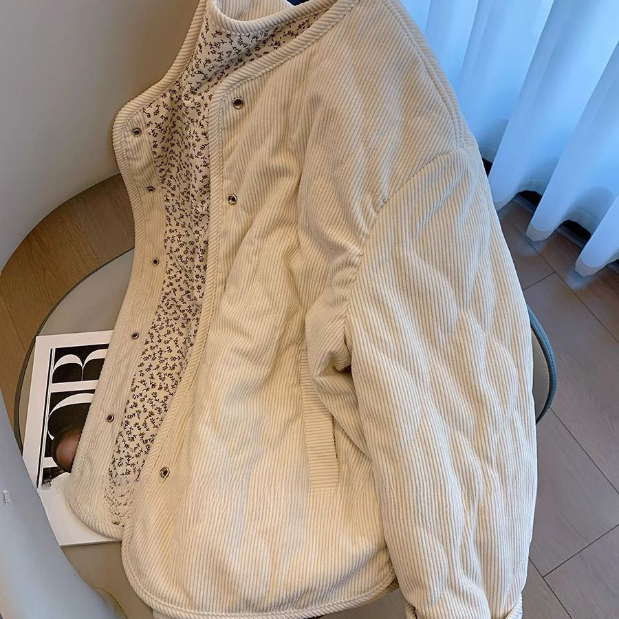 Design Sense Lints Spliced Broken Flower Lingge Cotton Coat Women's New Relaxed Leisure Cotton Coat In Winter HZ1208