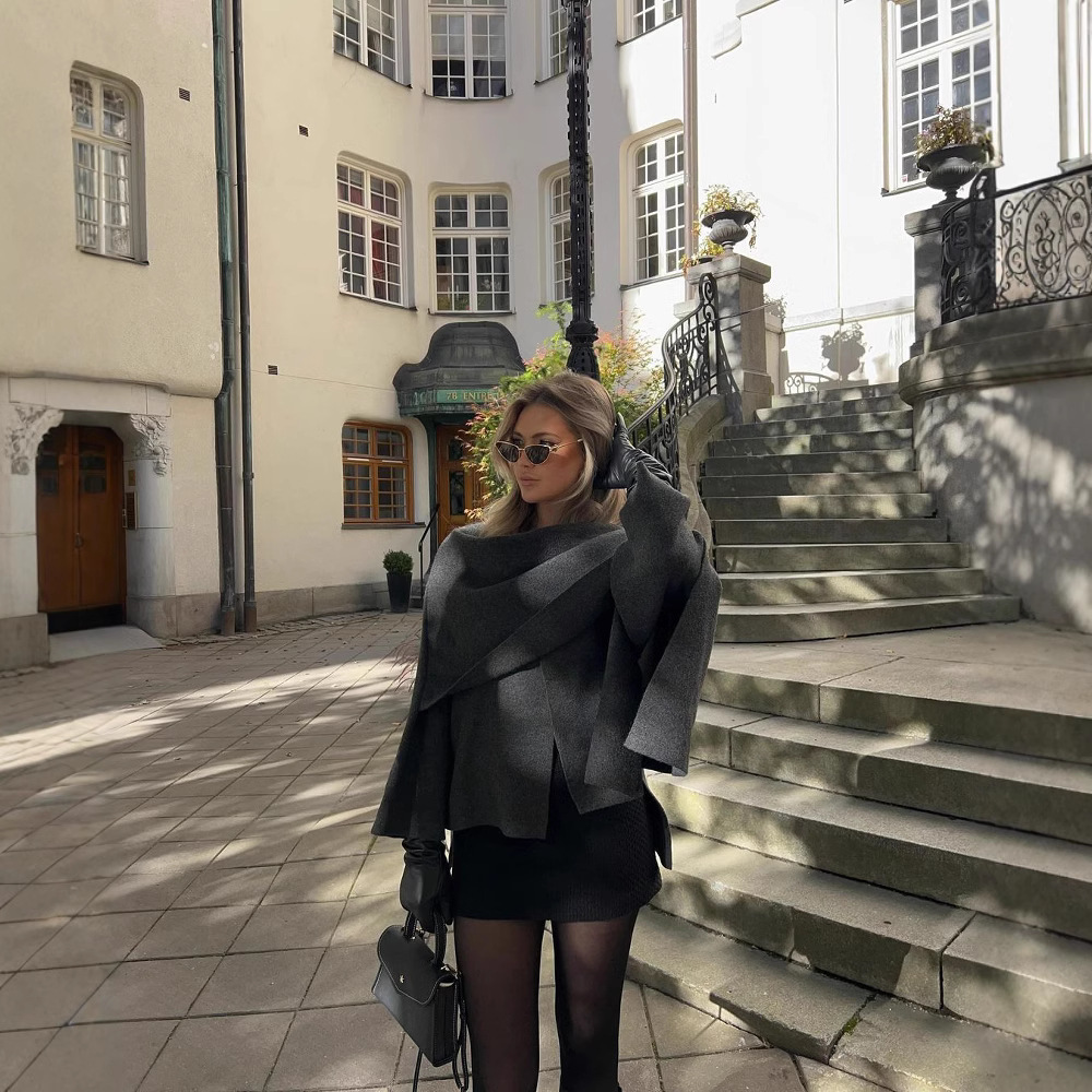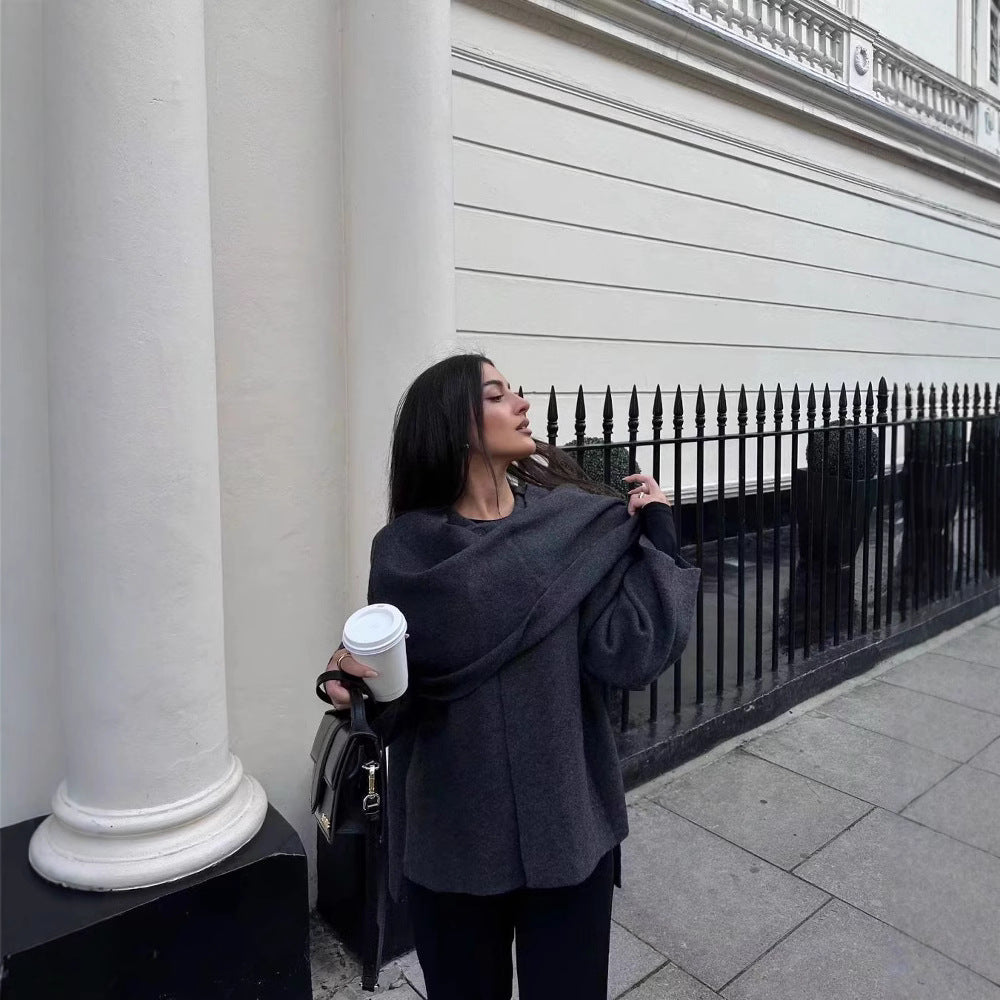 Explosion New Women's Clothing With Asymmetric Scarf Short Knitted Coat HZ1208