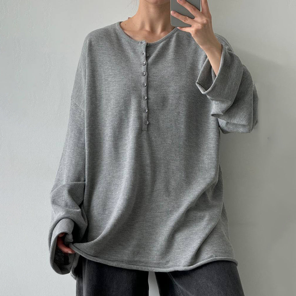 Fashion Simple Style Lock-Free Knitted Sweater Thin Lazi Loose Bottom Long Sleeve Lazy Leisure Autumn Winter HZ1208