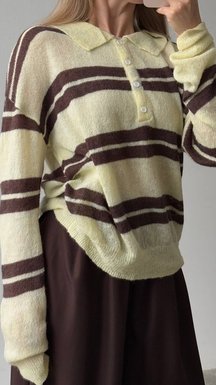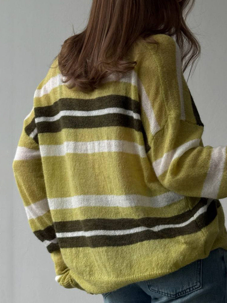 Fashion Striped Knitted POLO Shirt Collar Collar Sweater Loose Leisure Lazy Style New Women's Style HZ1208