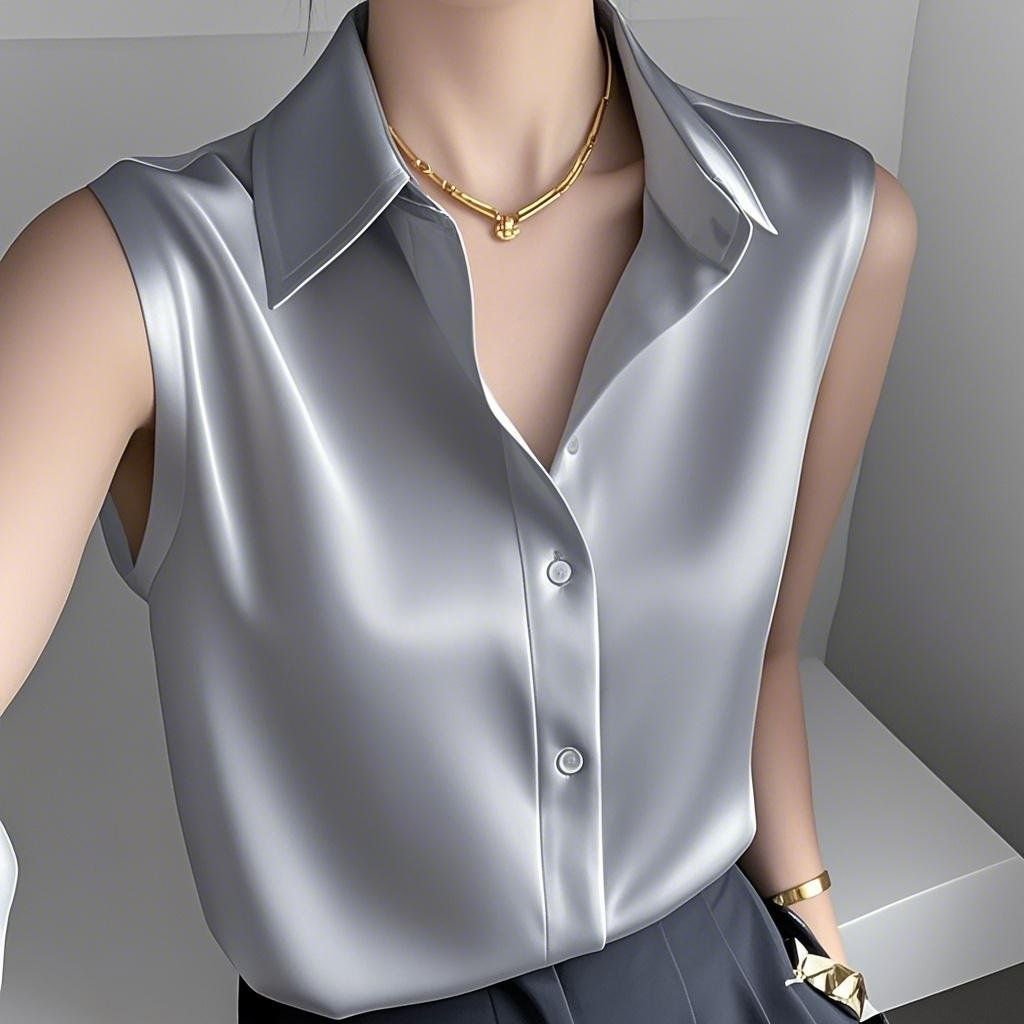 French Gentle Style White Polo Collar Sleeveless Shirt Women's Summer New Casual Temperament Small Shirt HZ1208