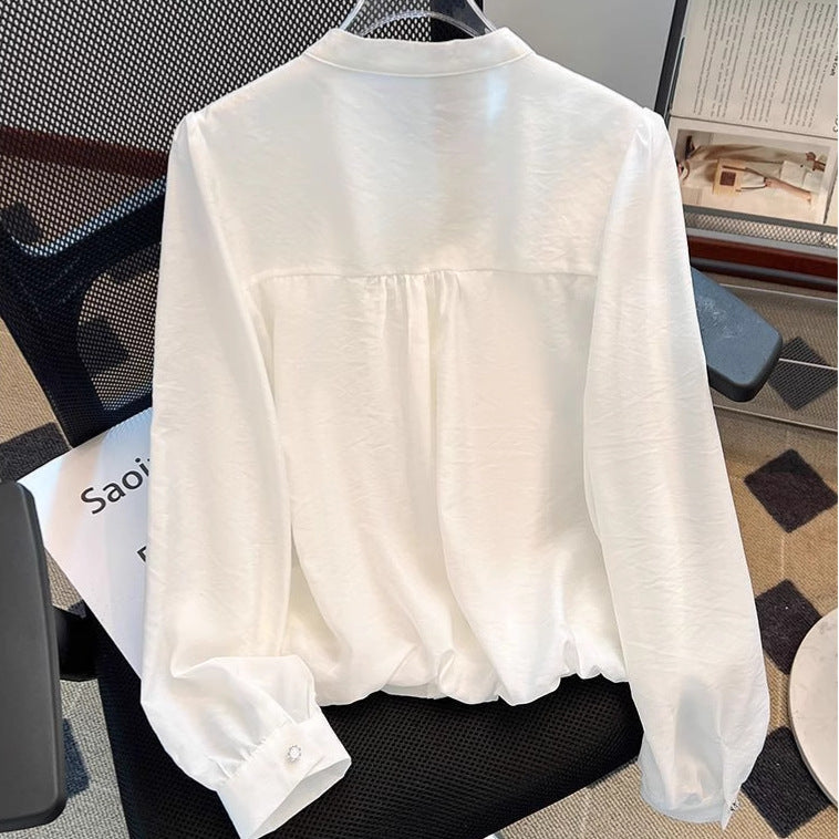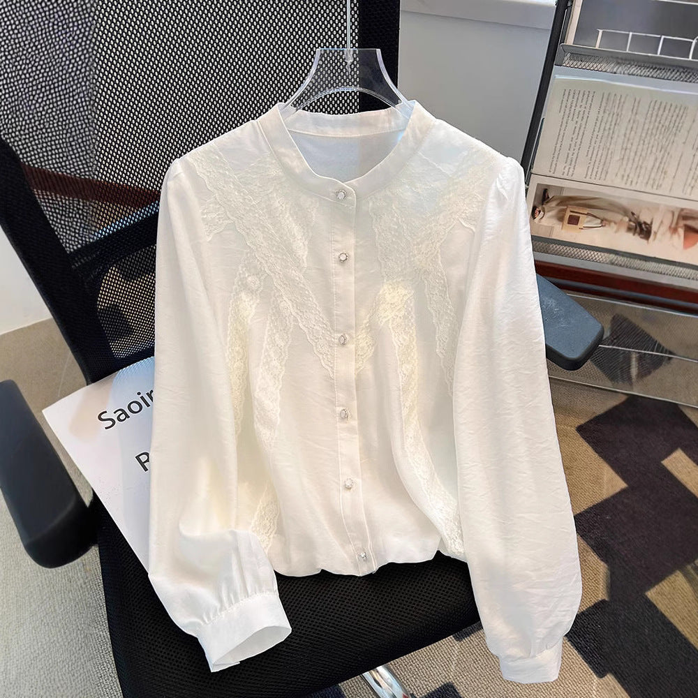 French White Shirt Female Senior Spring And Autumn 2025 New Good-Looking Lace Long-Sleeved Beautiful Shirt Top HZ1208