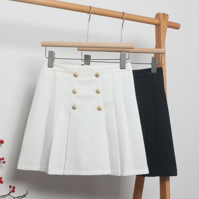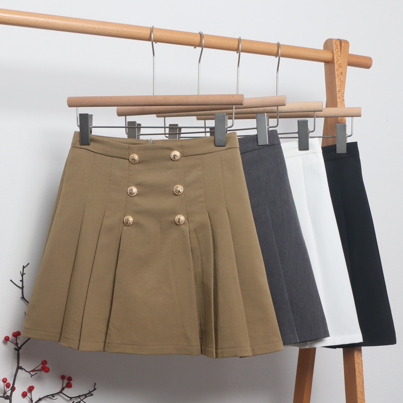 Guangzhou Women's Dress 2025 Spring Korean Version Of Double Buckle High Waist Thin A Short Skirt Suit 100-Folded Skirt HZ1208