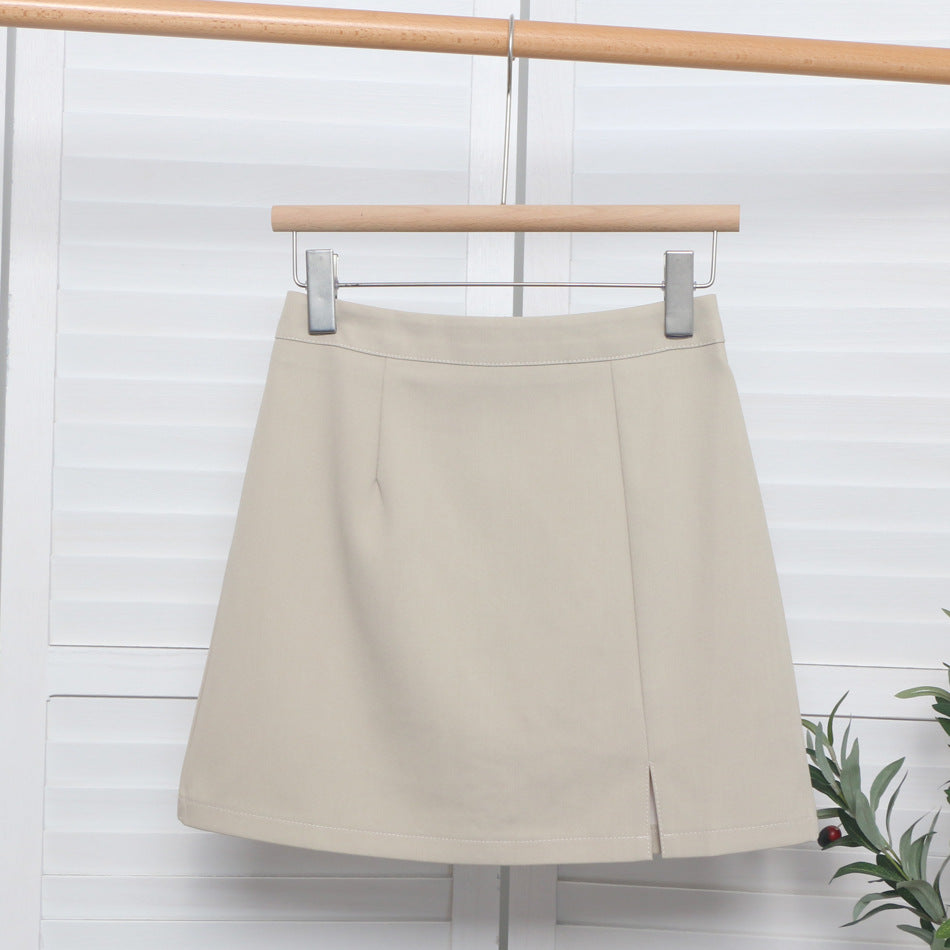 High-Waisted Open Forked-But Hip Anti-Walking A-Word Short Skirt Woman 2025 Suit Fabric Thin A-Dress Skirt 8871 HZ1208