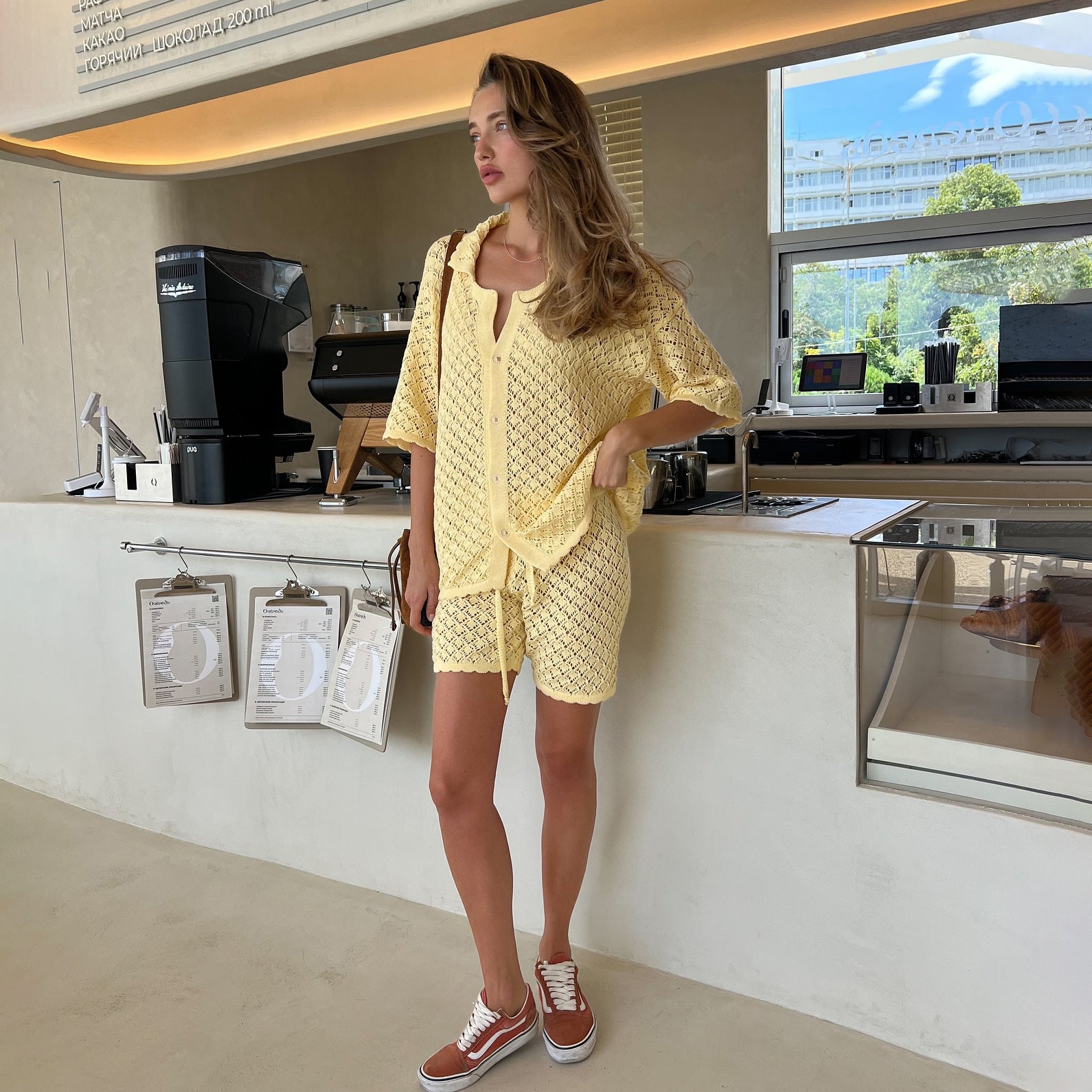 Holiday Fashion Knitted Hollow Set Beach Sexy Babes Casual Breathable Summer New Women Set HZ1208
