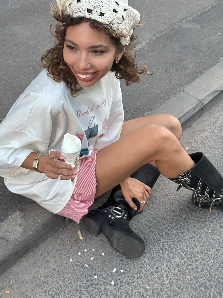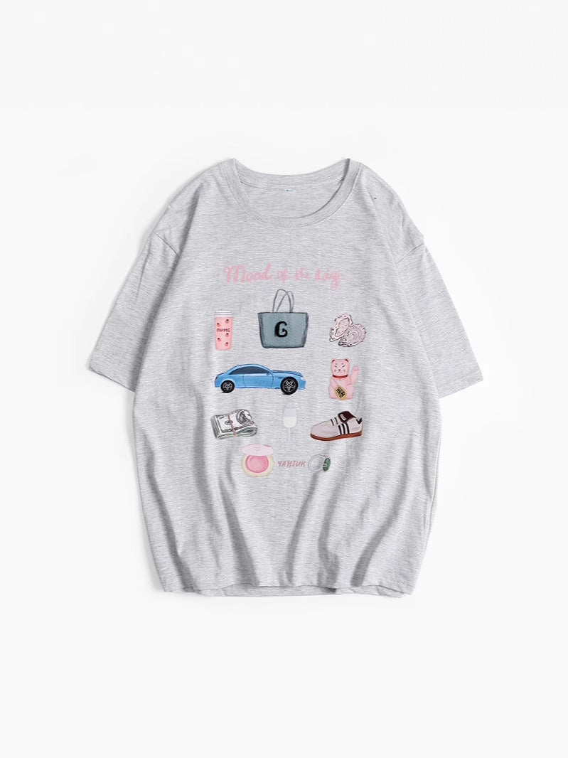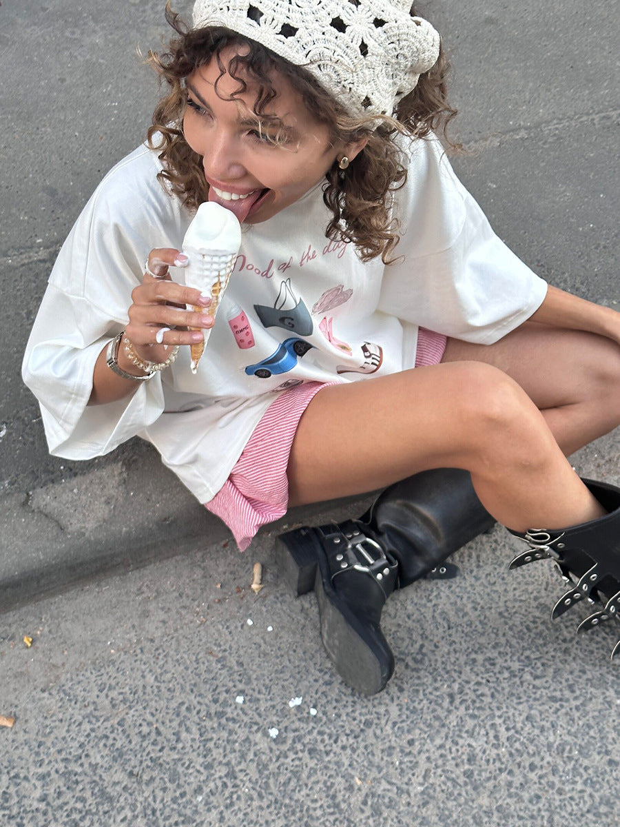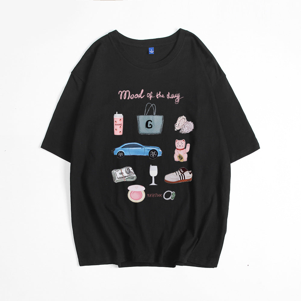 Hot Hand-Painted Printed T-Shirts For Women's Summer New Loose Round-Neck Cotton Short-Sleeved Tops Ins HZ1208