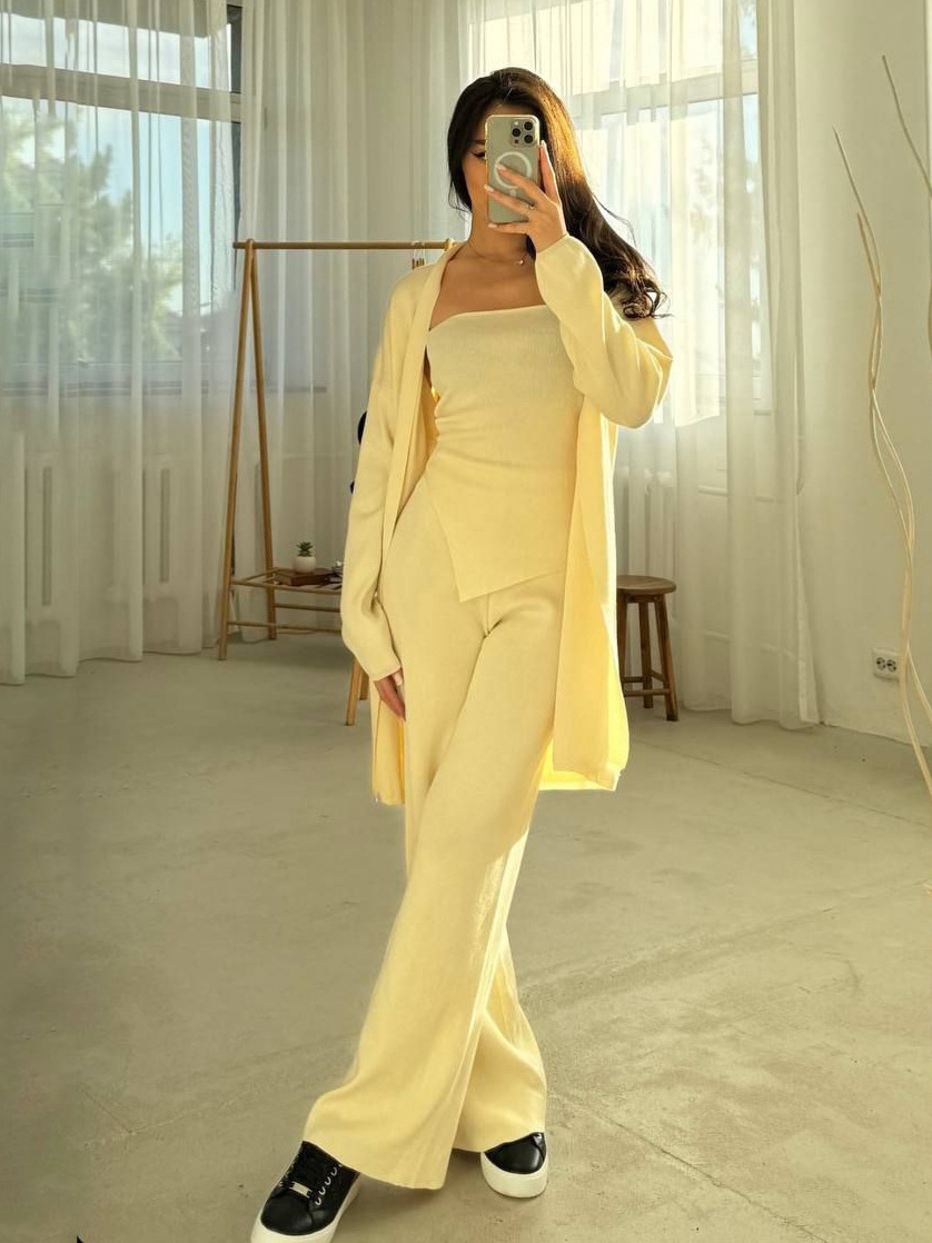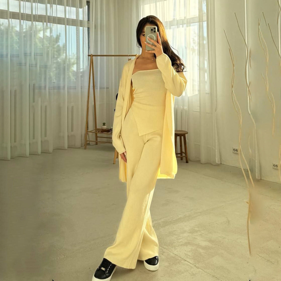 Light Luxury Temperament Casual Brooch Knitted Three Sets Of Women