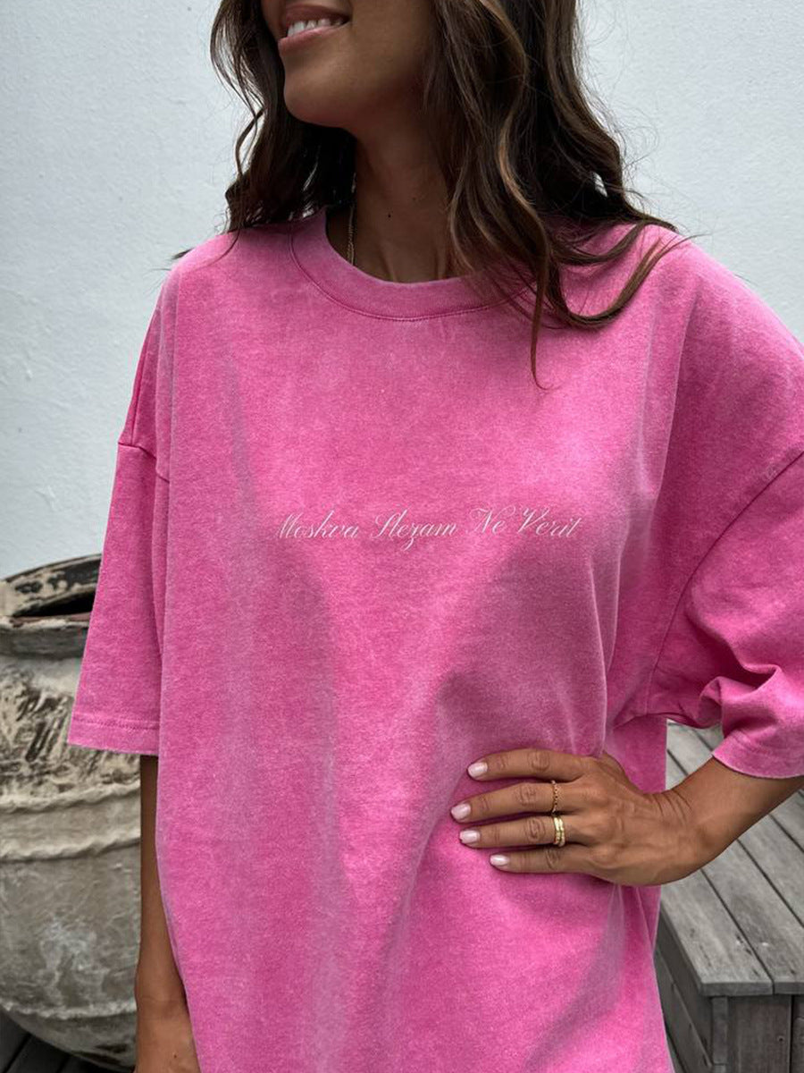 Loose Korean Version Of The Ins Tide Brand Short-Sleeved T-Shirts For Women's Summer New Water Washing To Make Old Design Feel On The Bottom Of The Clothes HZ1208