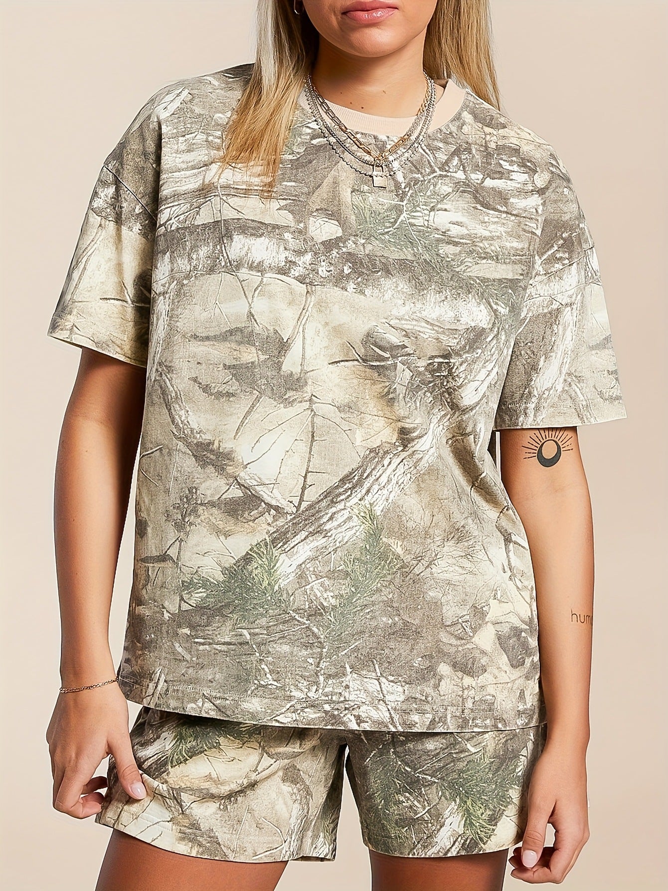 New Summer 2025 Summer Camouflage Shorts Comfortable Fashion Casual Two-Piece Women's Suit HZ1208