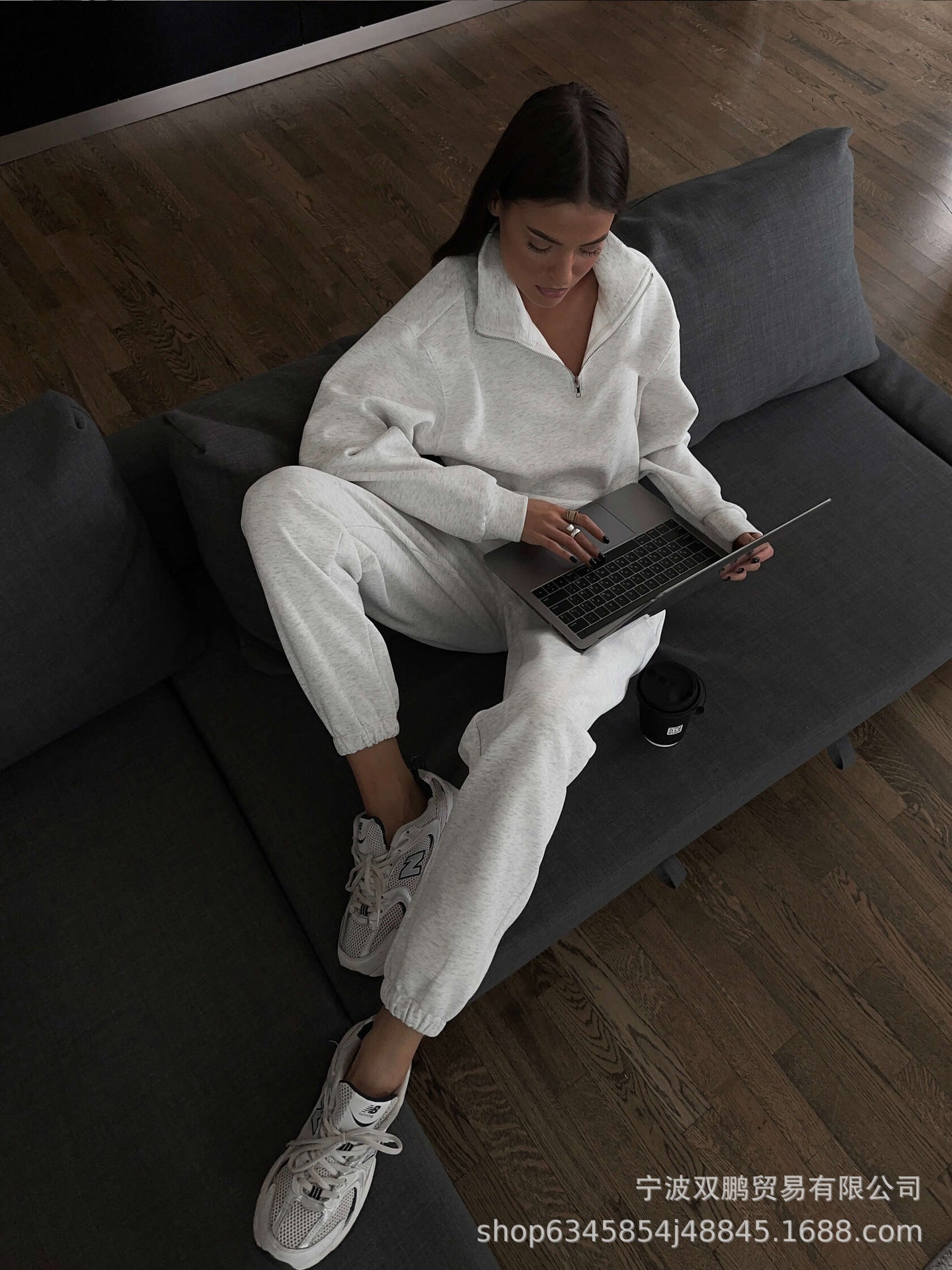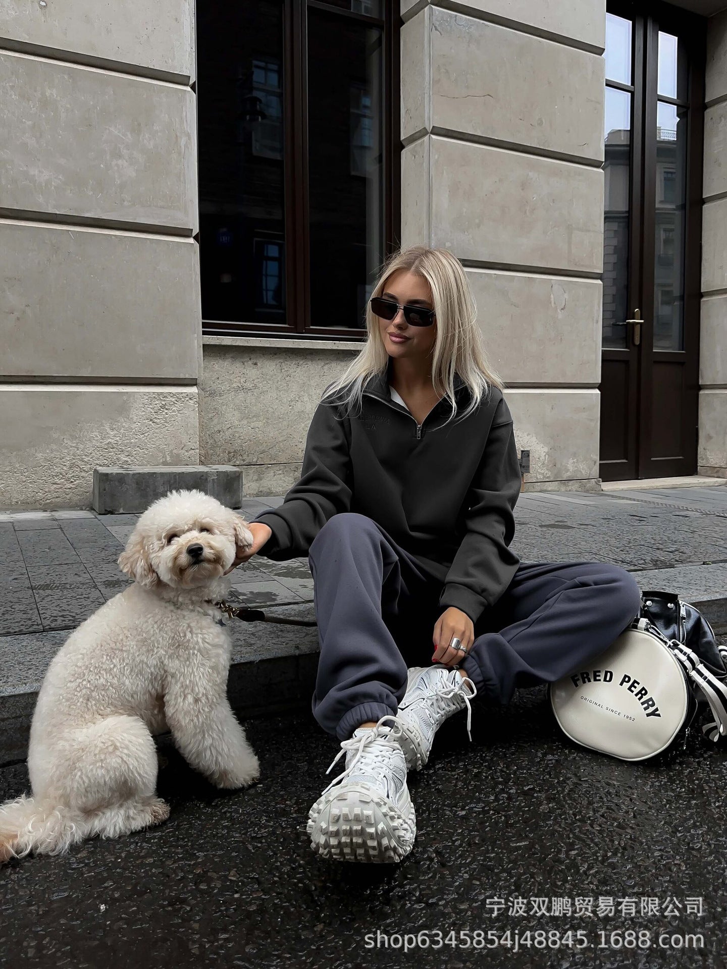 New Velvet Half Zipper Collar Collar Sweater 30 Cotton Leisure Sports Blouse Woman In Autumn And Winter 2025 HZ1208