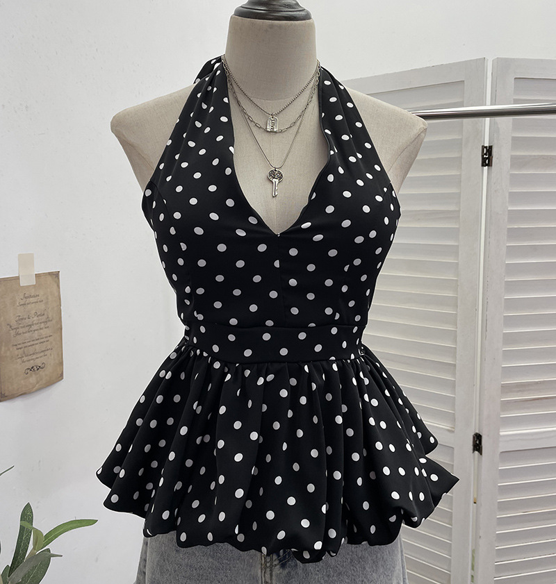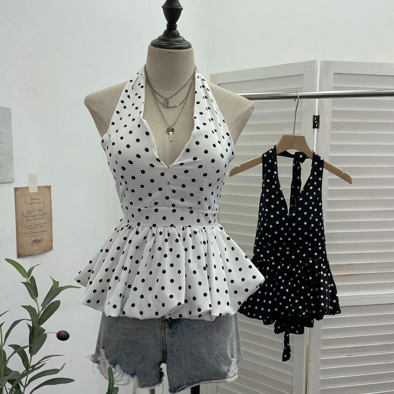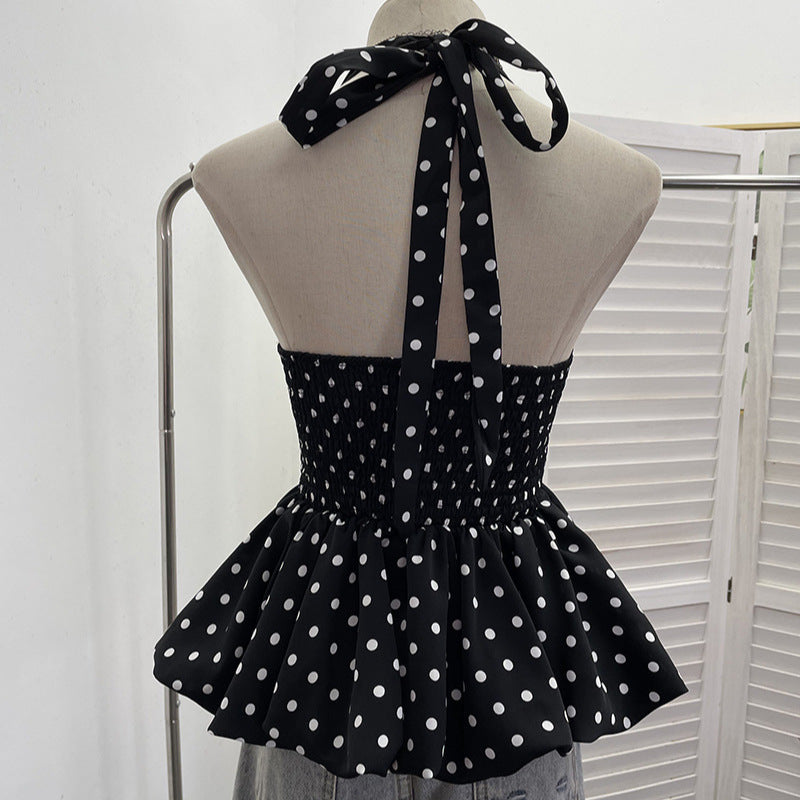 Purely Want To Show The Back Hanging Neck Tie With Wave Point Sling Vest Skirt Sleeveless Doll Shirt Short Top 9230 HZ1208