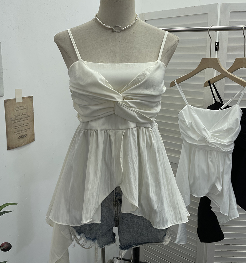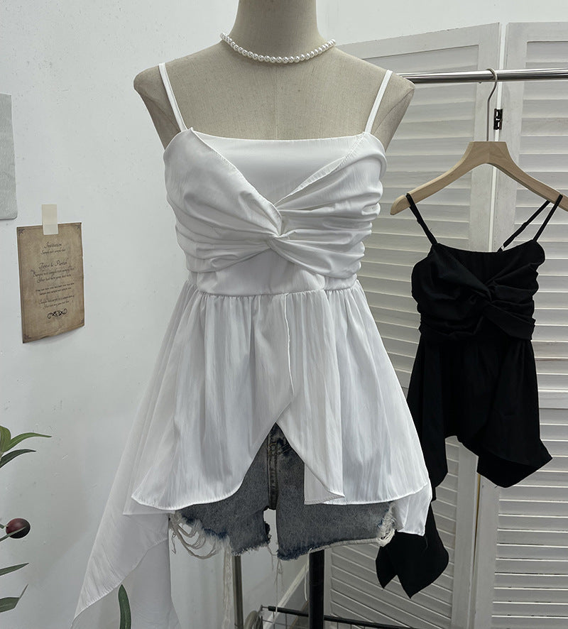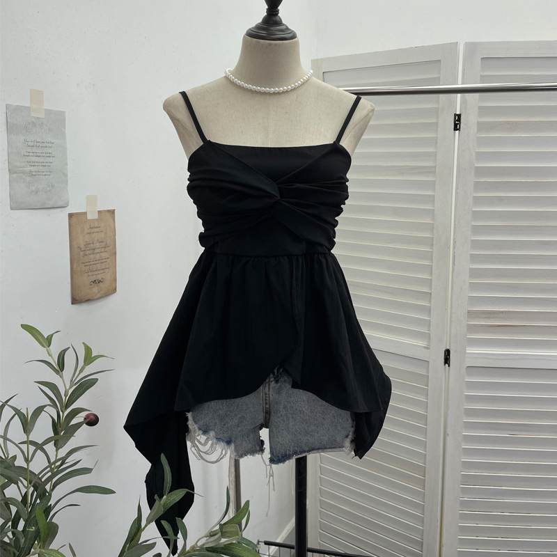 Real Shooting Irregular Kinky Skirt Shaved Belly Thin Sling Vest Design Slim Slime Sleeveless Top 9150 HZ1208
