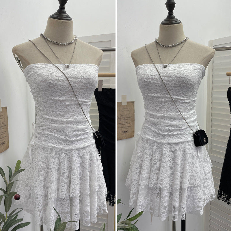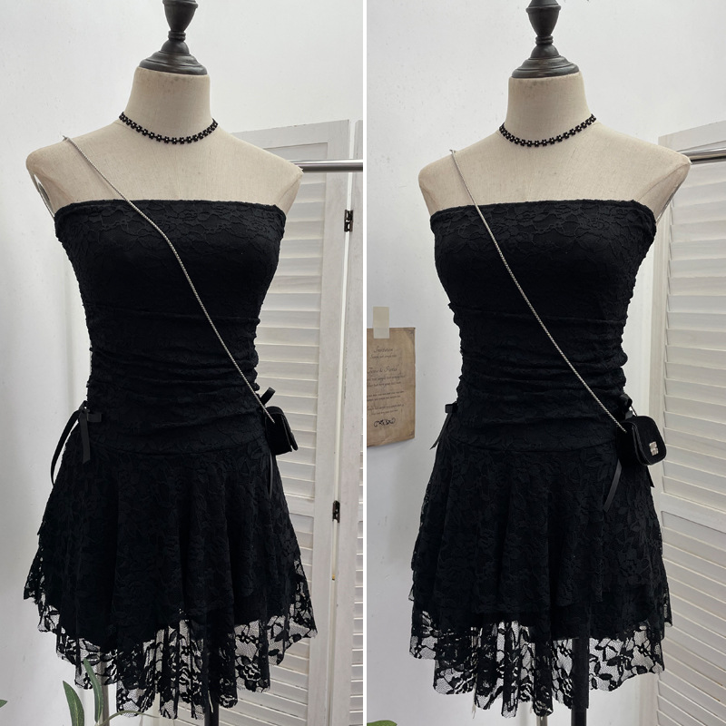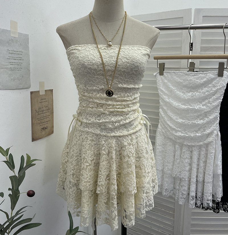 Real Shooting Retro Lace Spell To Receive Waist-Meared Tective Dress Sexy Collared Cake Dress Small Man Short Dress 1272 HZ1208