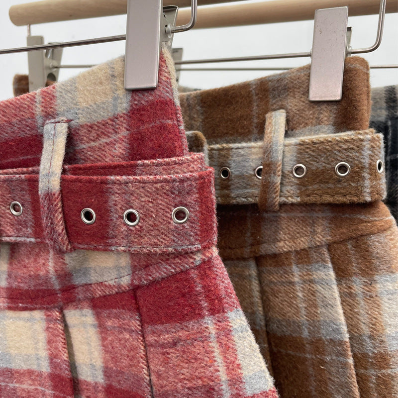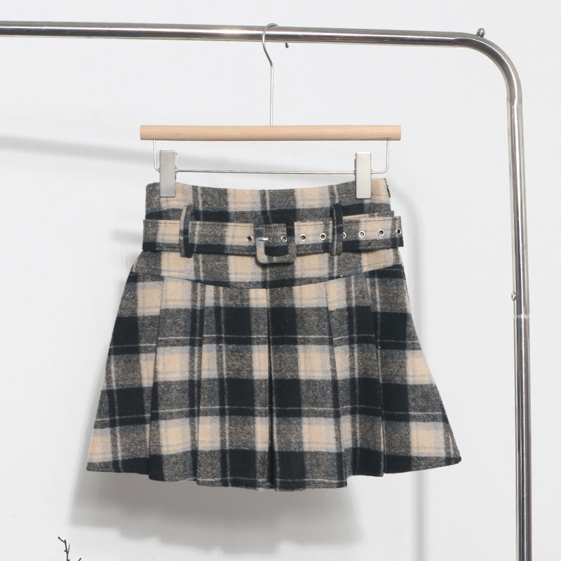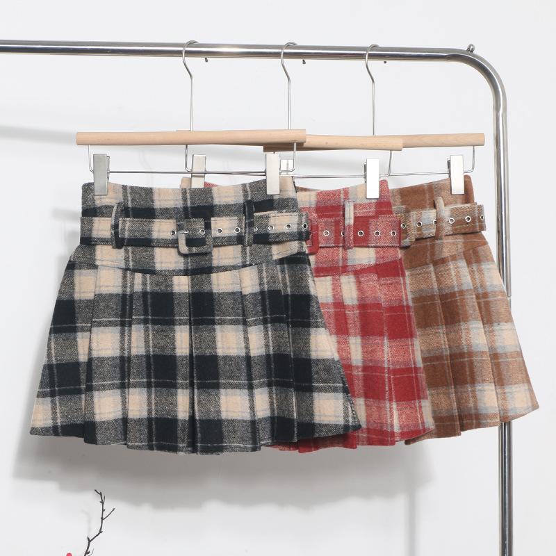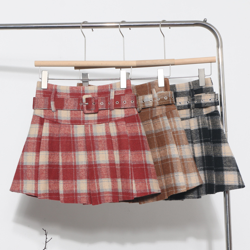 Real Shooting With Belt ~ Lattice Hair Of The Hundred Folded Skirt High Waist Anti-Light Small A Word Short Skirt 8382 HZ1208