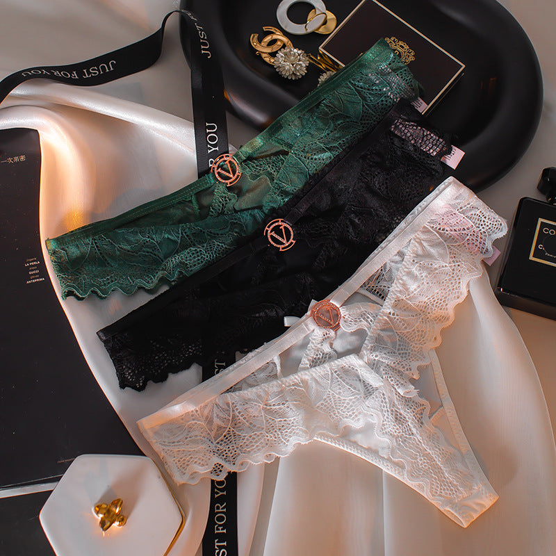 Relay Empty Trousers V Flash Diamond Buckle Lace Side Trousers Without Trace Ice Splicing Lace Lady T-Tants HZ1208