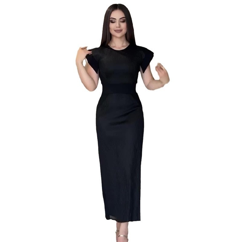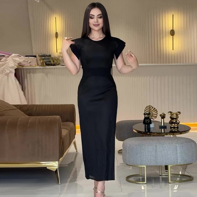 Sexy Women's New Round Neck Short Sleeves Waist Temperament Dress HZ1208
