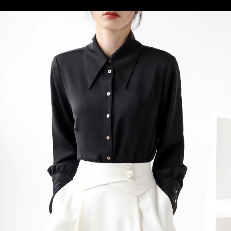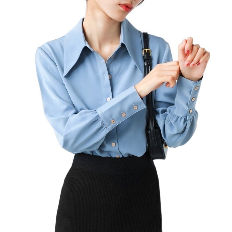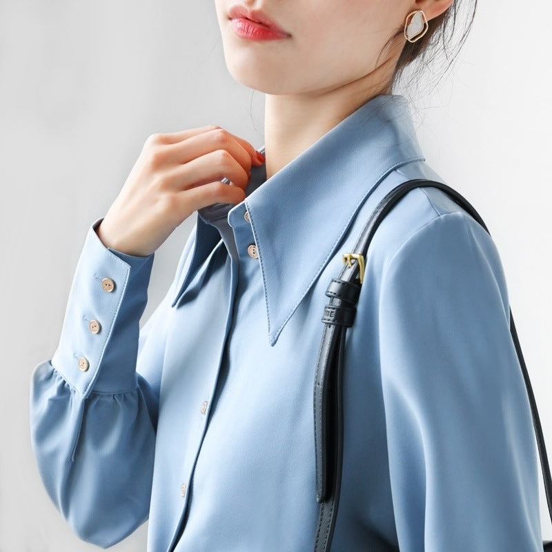 Smog Blue Sharp Collar Shirt Woman 2025 Spring And Autumn Design Small Commuting Professional Shirt Vinegar HZ1208