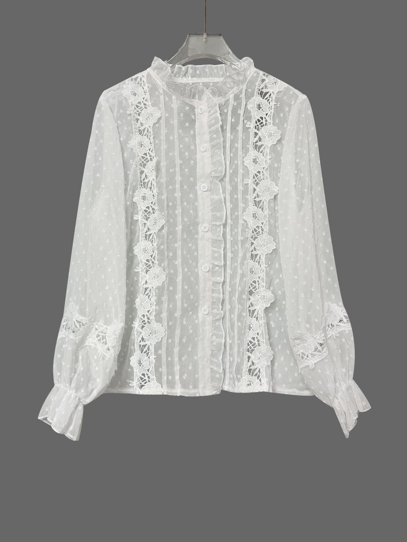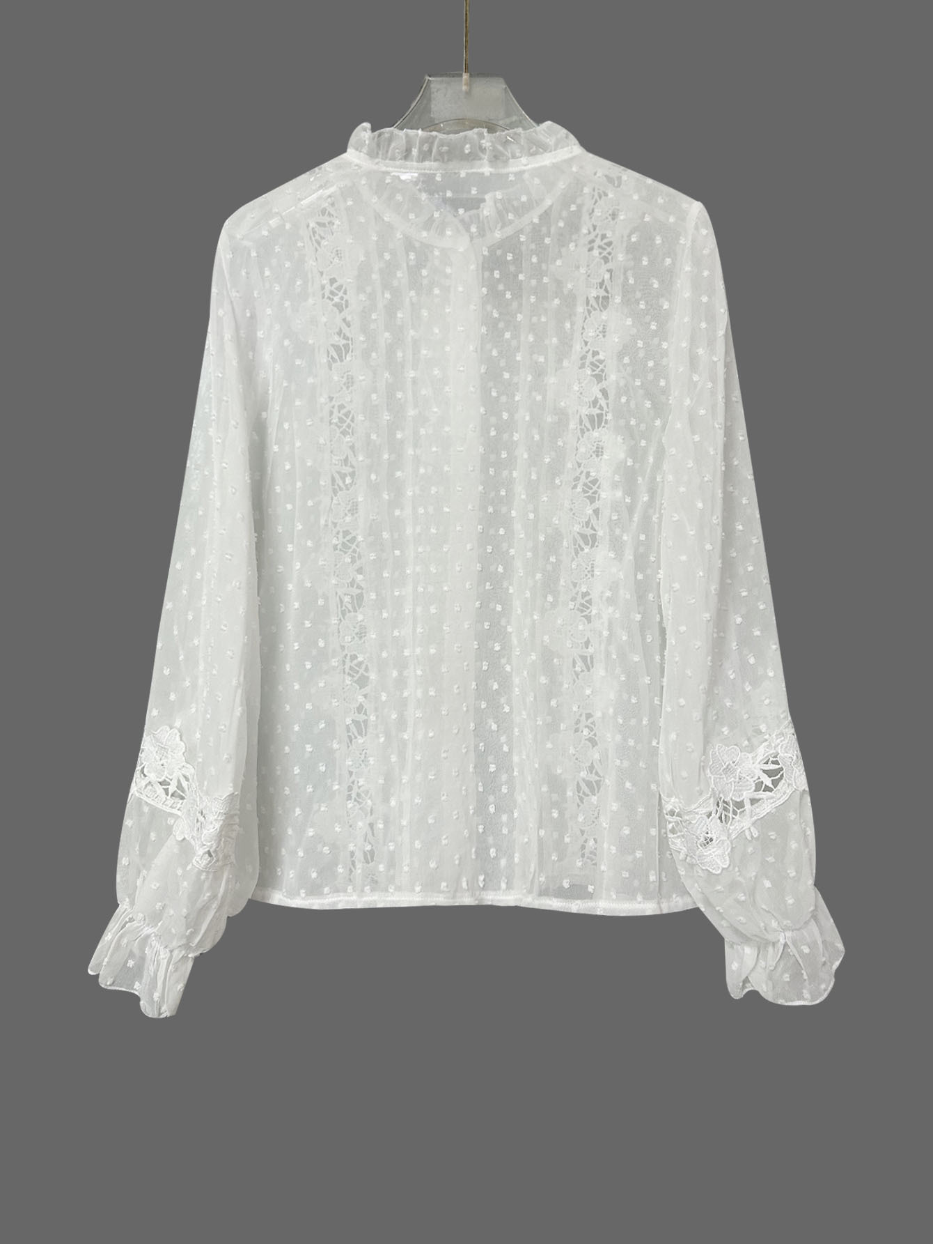 Solid Color Hooks Hollow Long-Sleeved Shirt 2025 Autumn And Winter New Temperament Collar Micro-Sleeve Shirt Shirt HZ1208