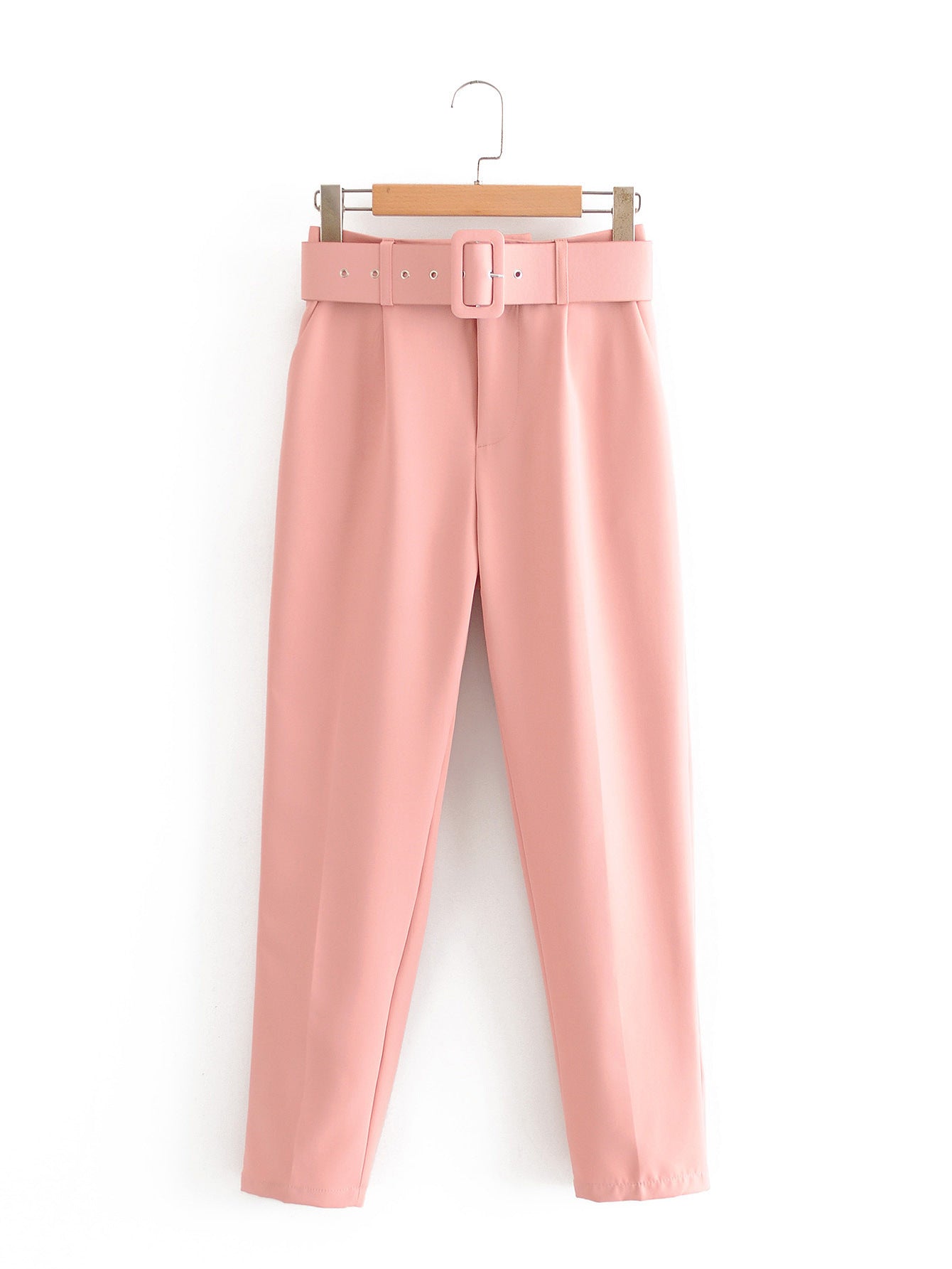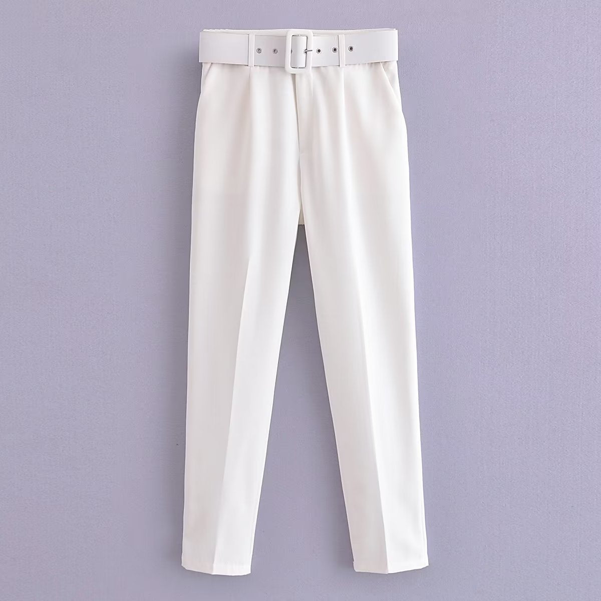 Spring 2025 New ñÞÖå Multi-Colored Harun Pants Casual Solid-Colored Small-Footed Women's Trousers Belt HZ1208