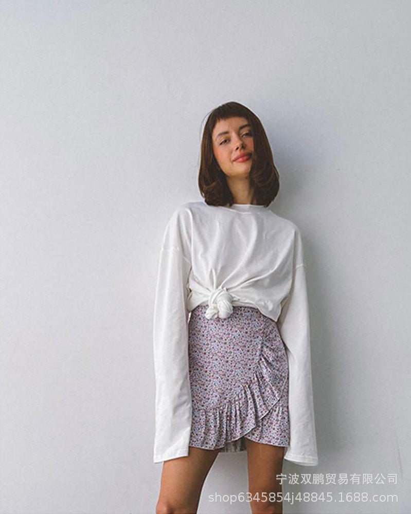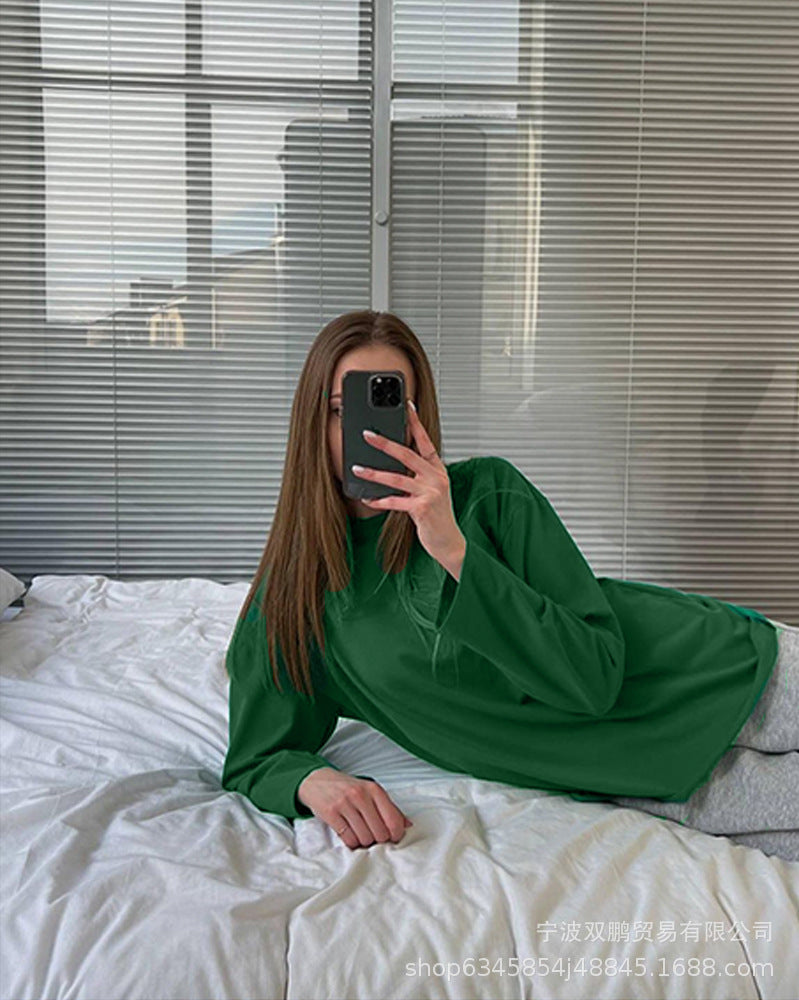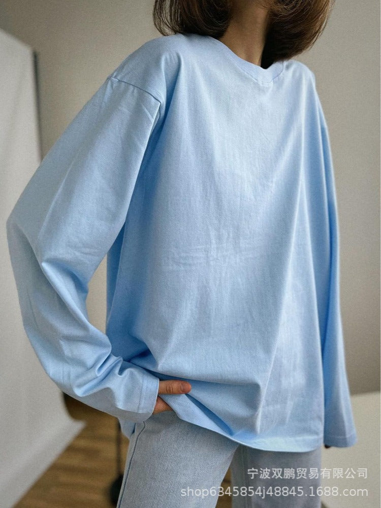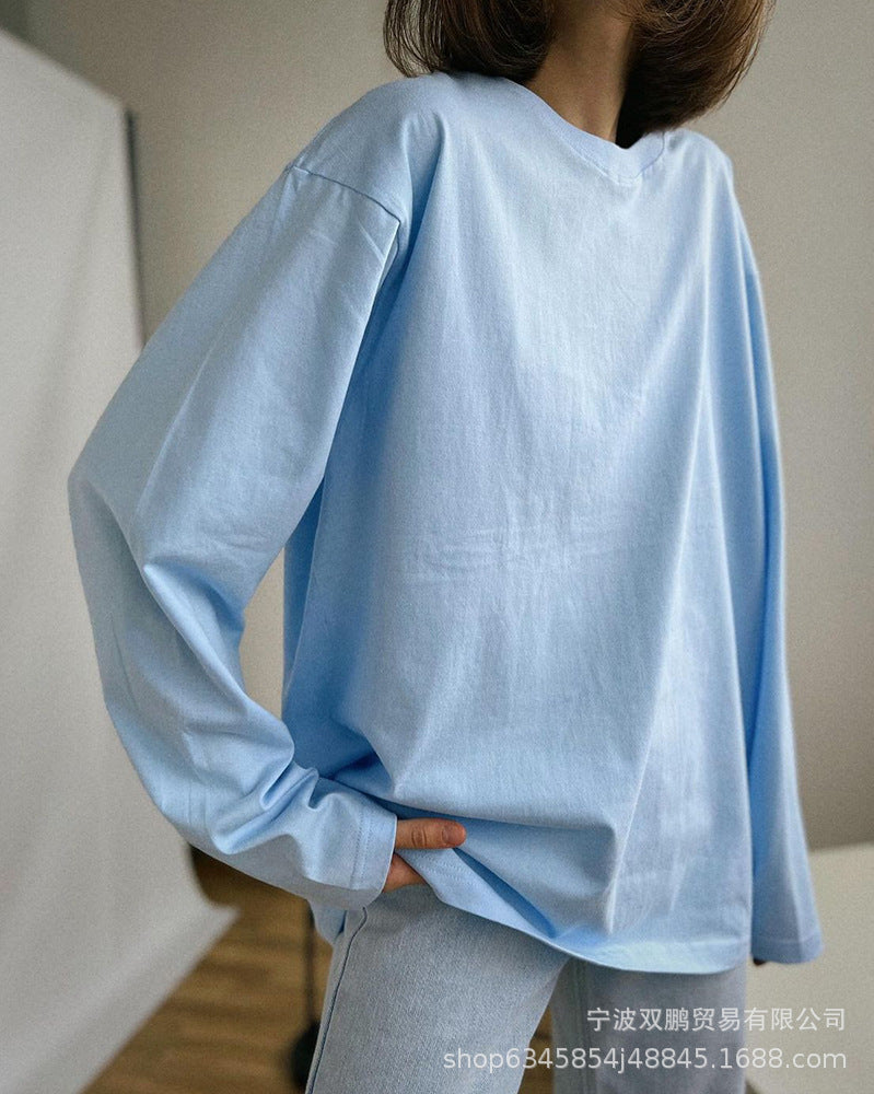 Spring And Autumn 2025 New Solid Color Long-Sleeved T-Shirt Women's Loose Basic Casual Pure Cotton T-Shirt 3317B HZ1208