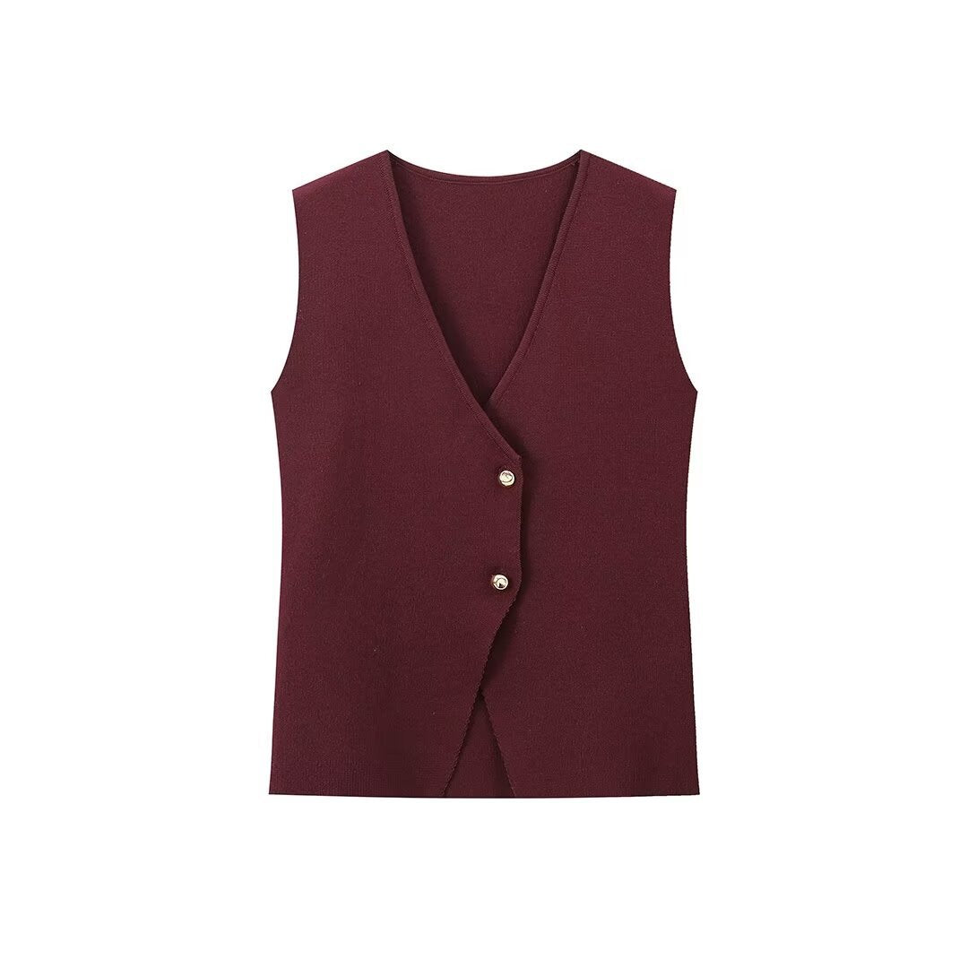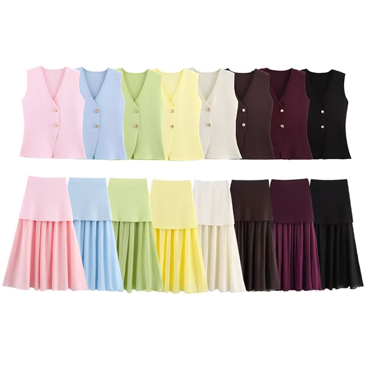 Summer New Gold Button Knitted Vest Small Folding Splicing Skirt Set HZ1208
