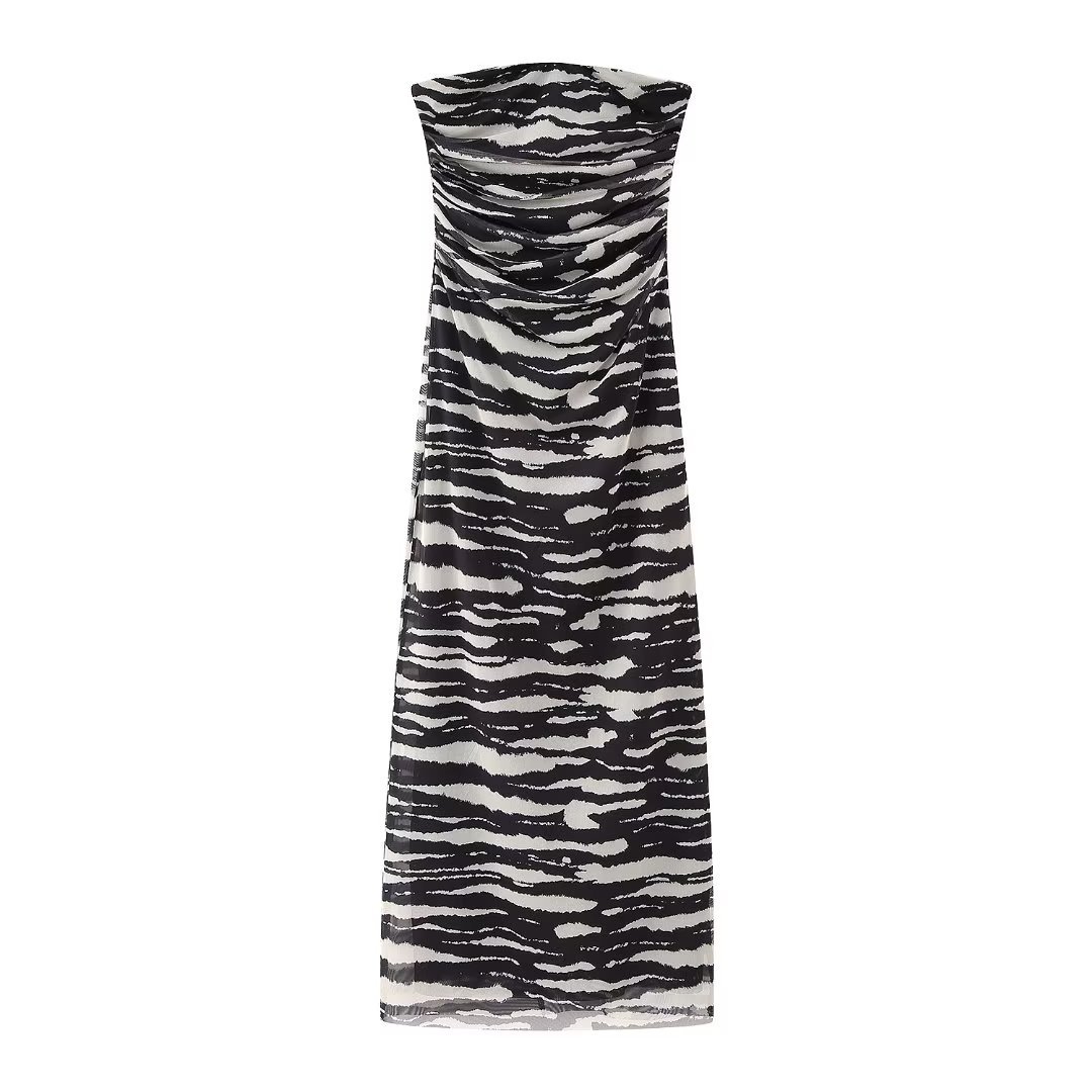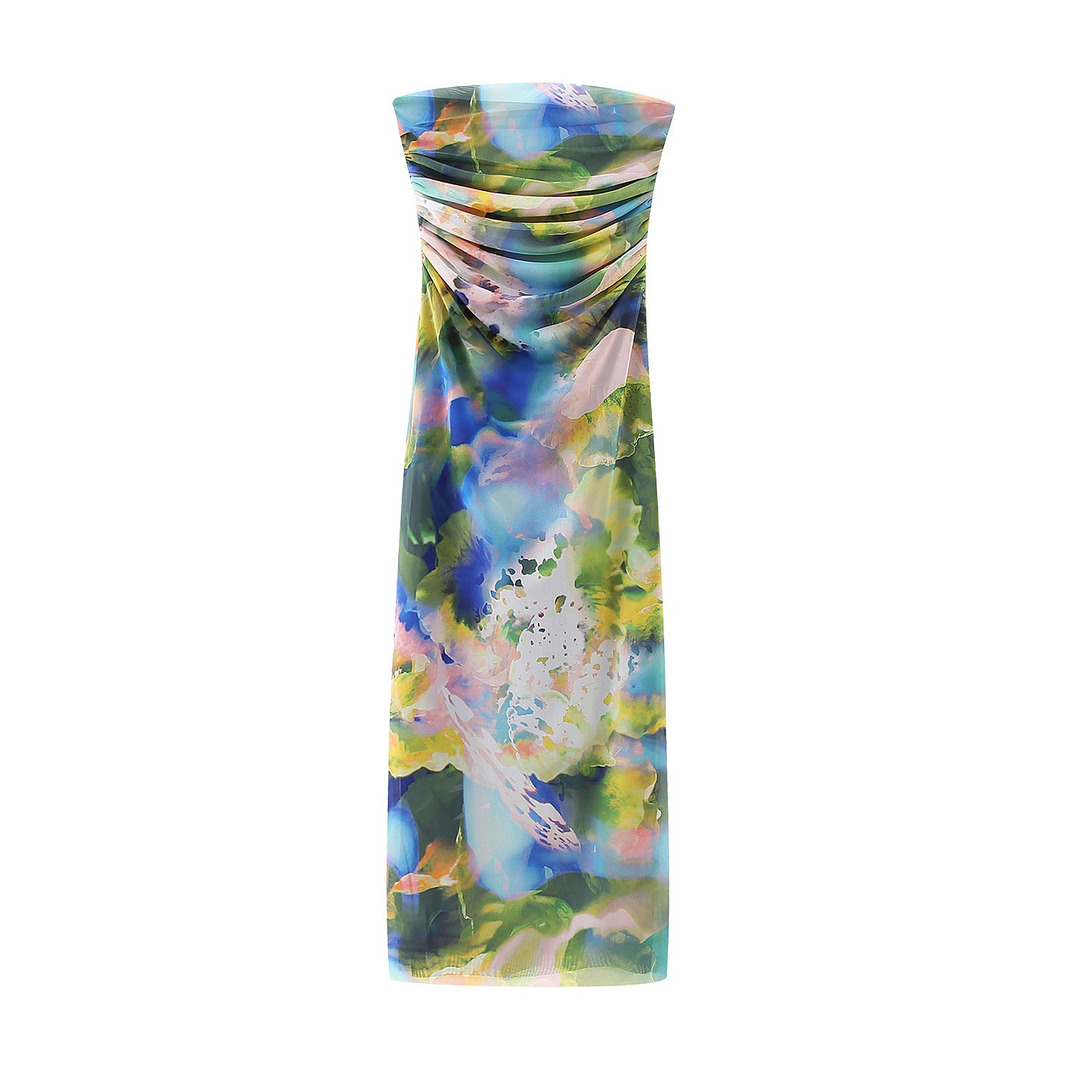 Summer New Printing Net Folding Body Thoracic Dress 5039373 HZ1208