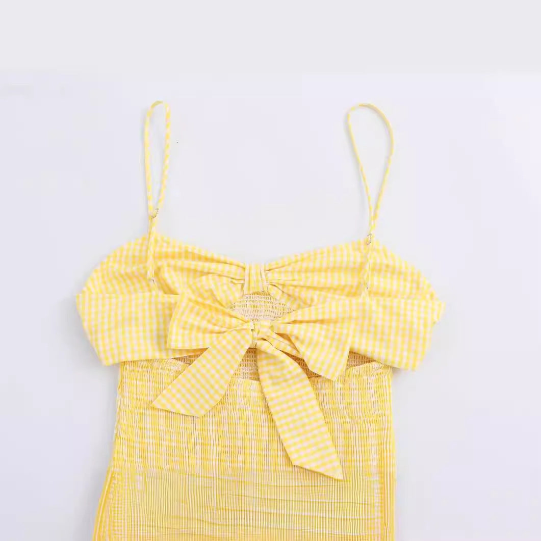 Summer New Small Check-In Bow Ornament Back Hollow Dress 8034522 HZ1208