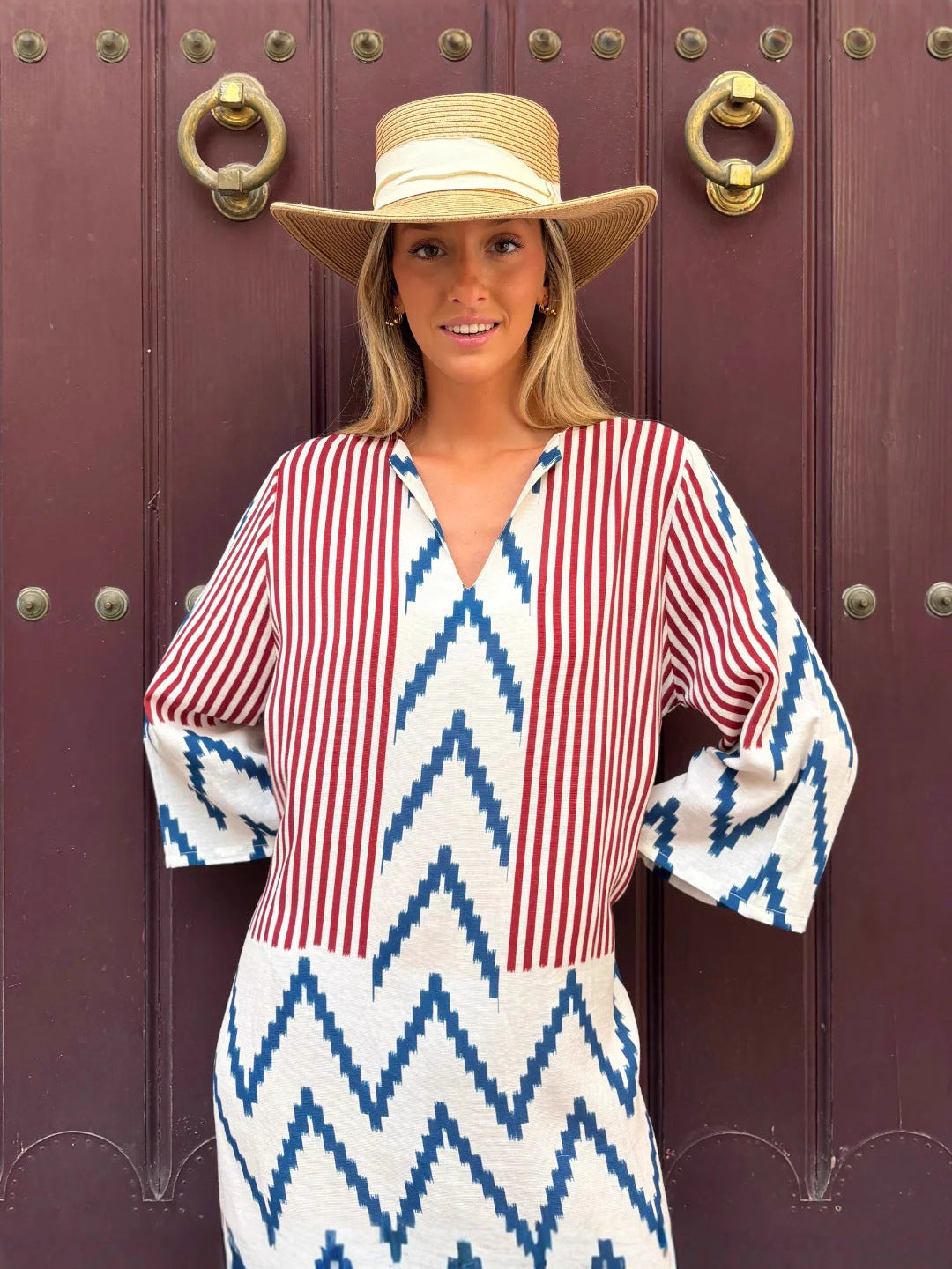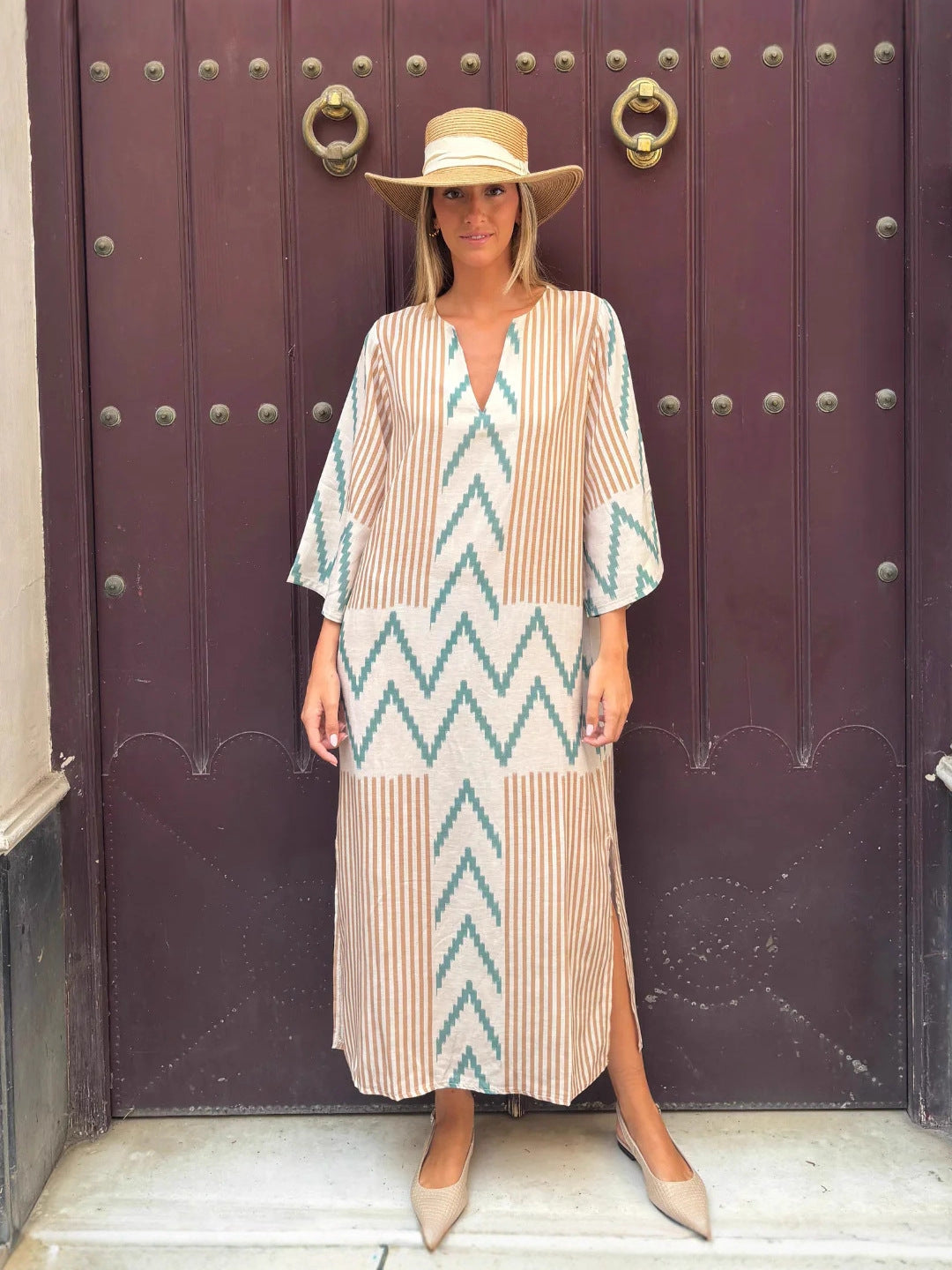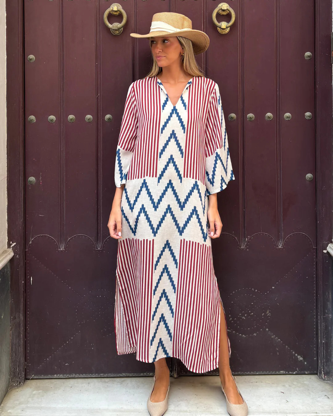 Women's New Striped V-Neck Dress Women's Summer Loose Casual Dress HZ1208