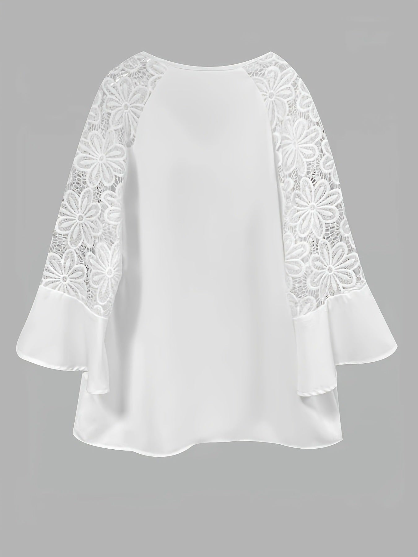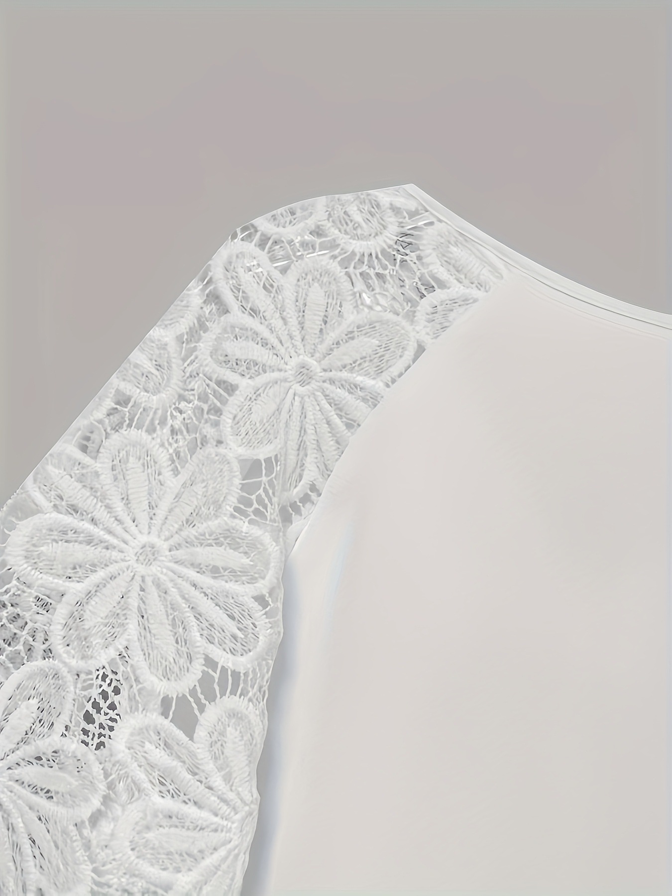 Women's T-Shirt White Seven-Sleeved Lace Splicing Round Tie Solid Color Shirt Woman HZ1208