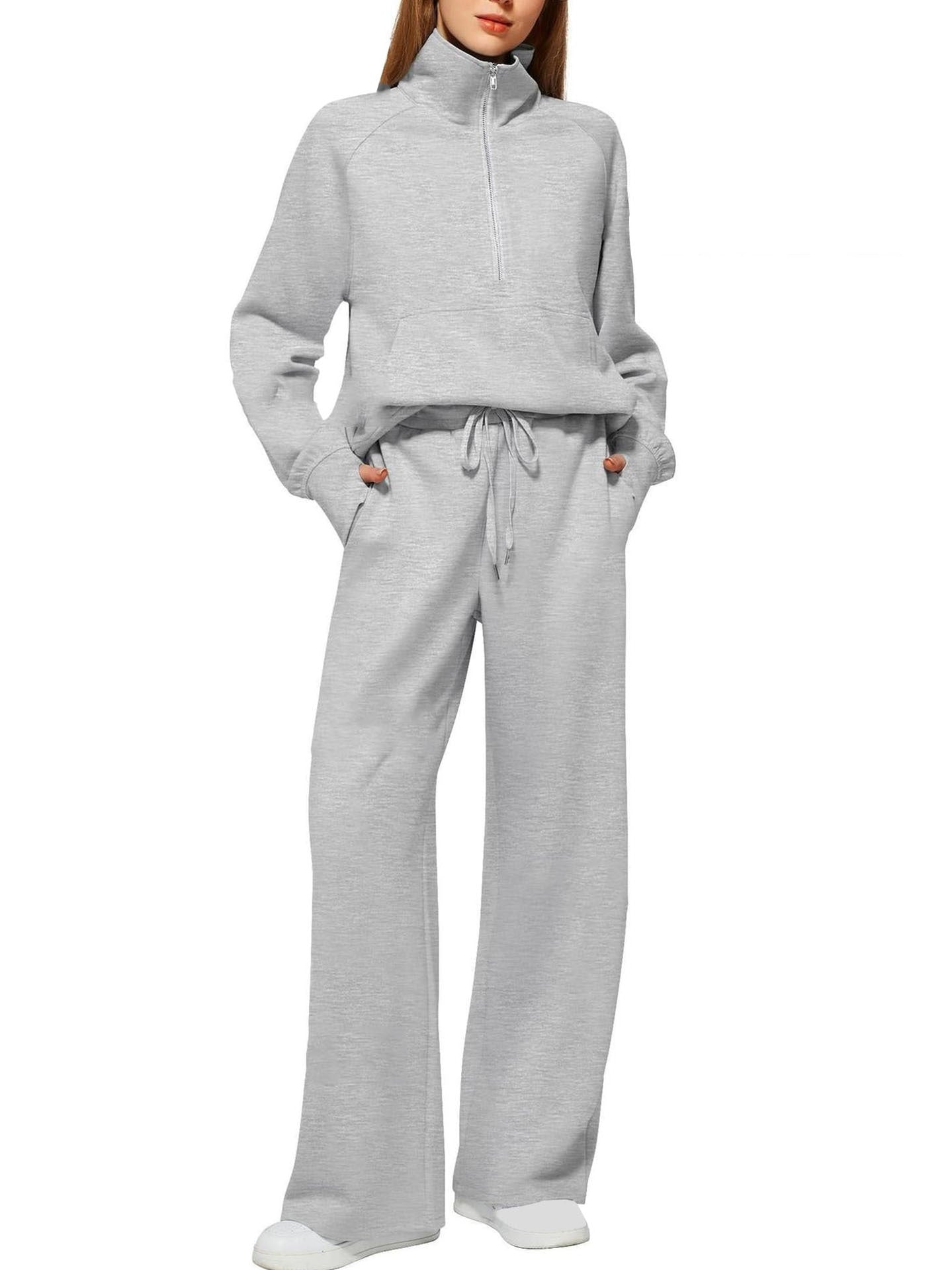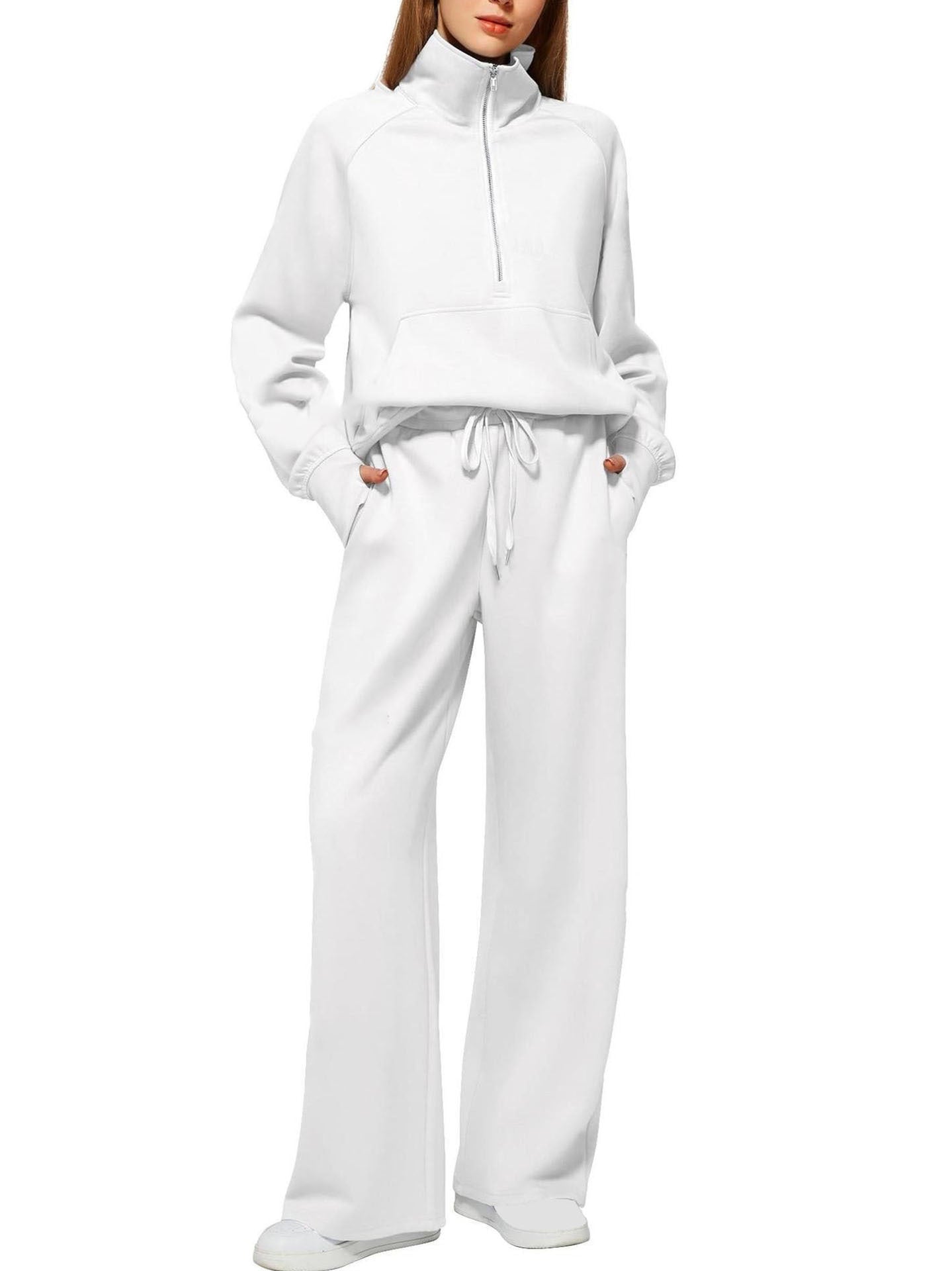 Women's Two-Piece Set Of Half Zipper Sweatshirt Wide Leg Sweatpants Casual Suit Women HZ1208