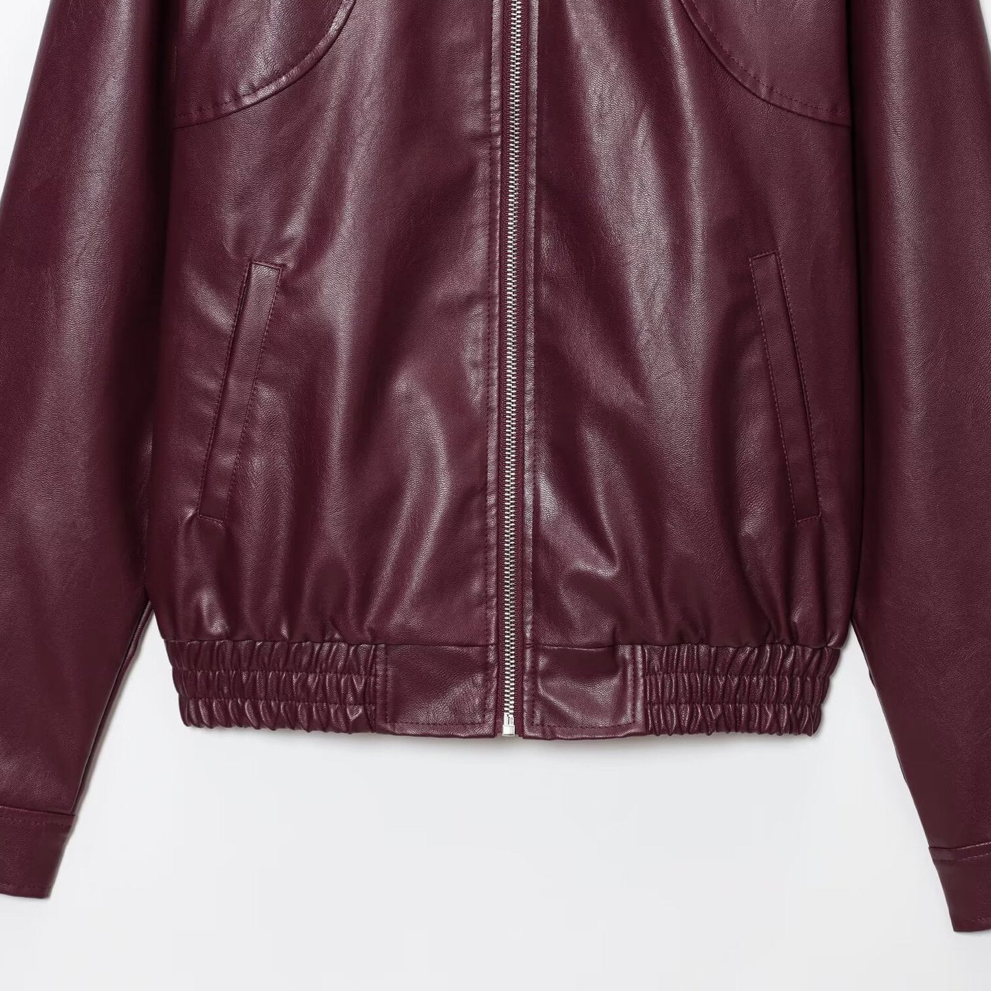 Z2025 New Vintage Simple Collar Zipper Wine Red Leather Coat Woman HZ1208